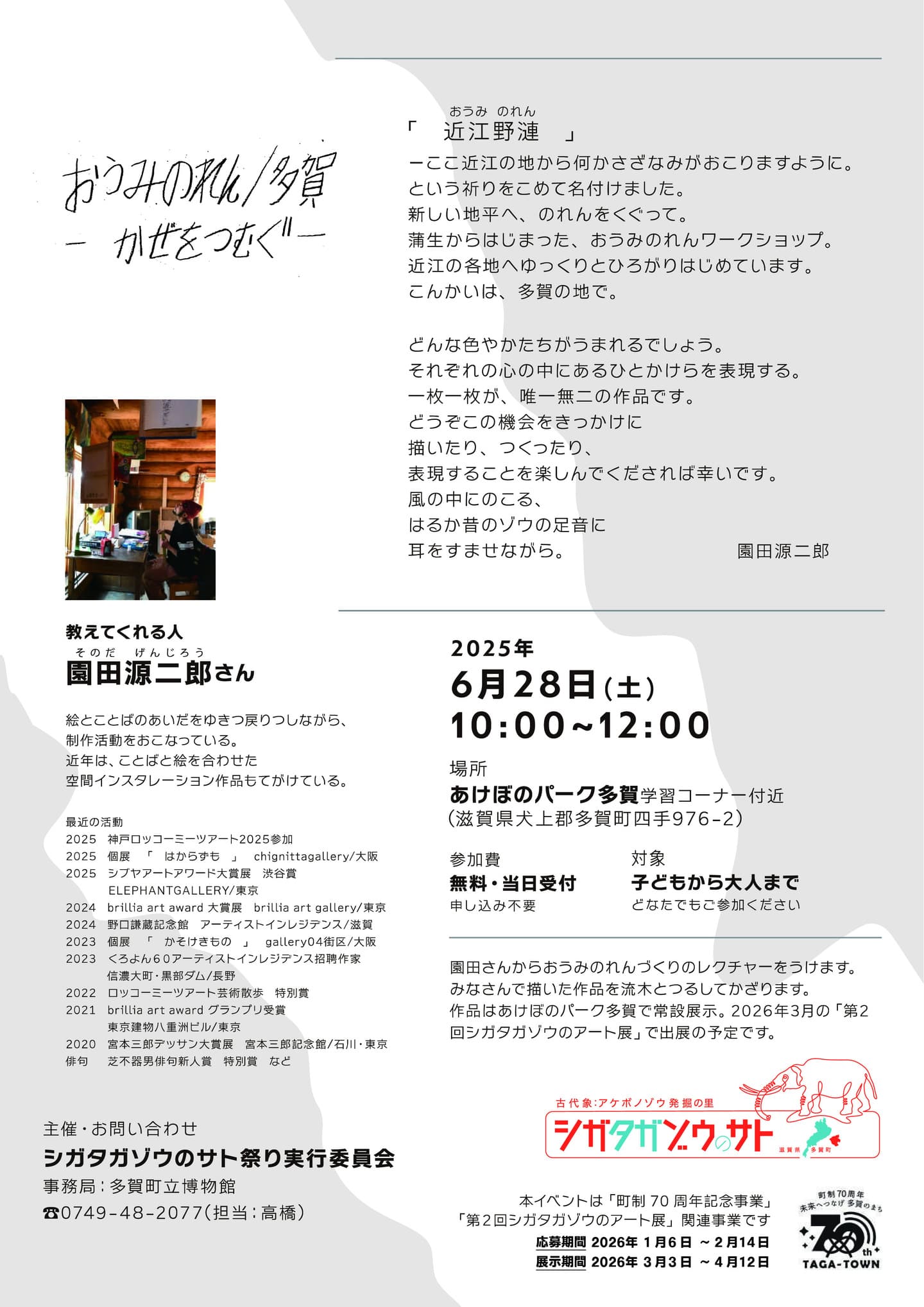 主催:シガタガゾウのサト祭り実行委員会 協力:多賀町教育委員会