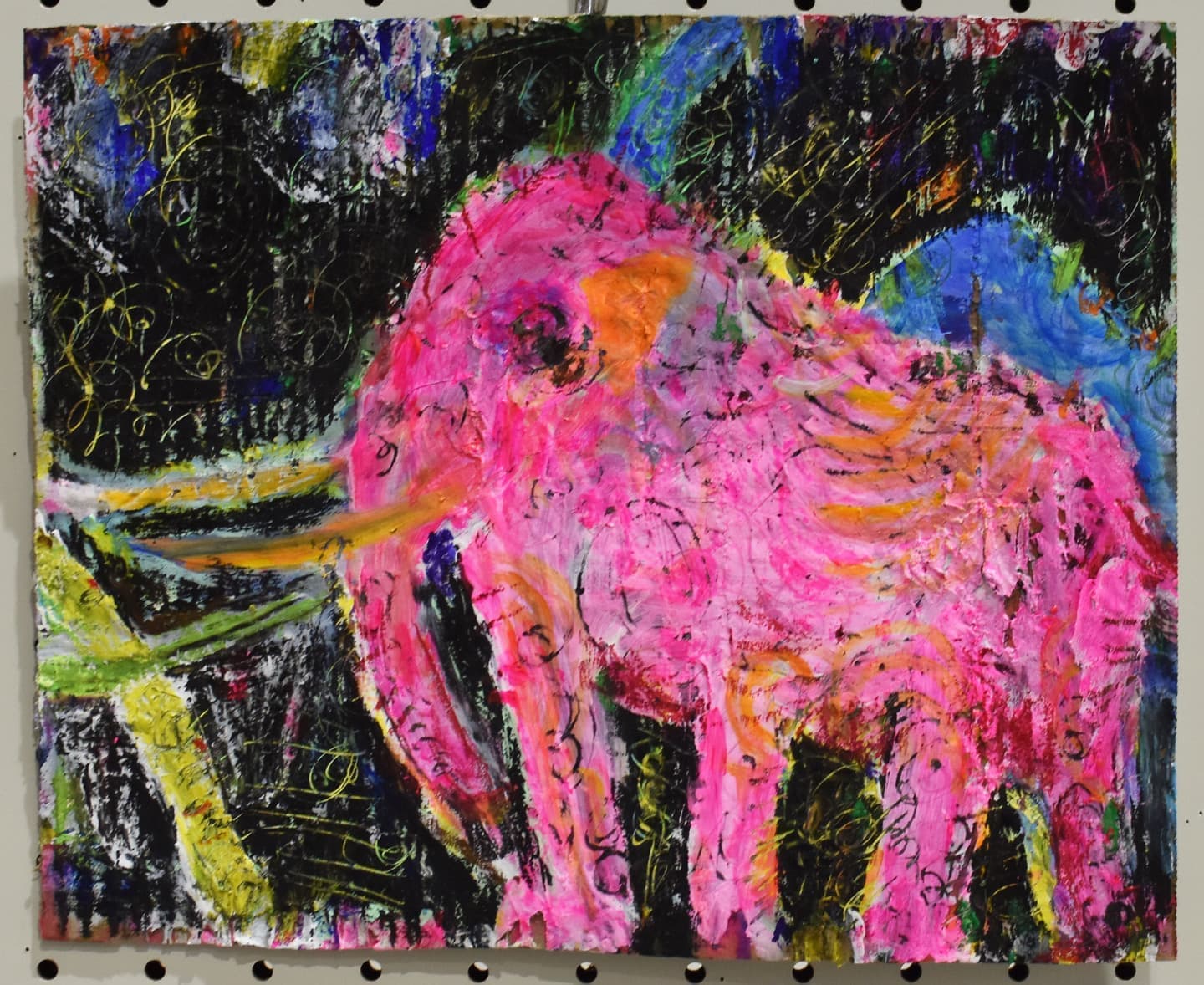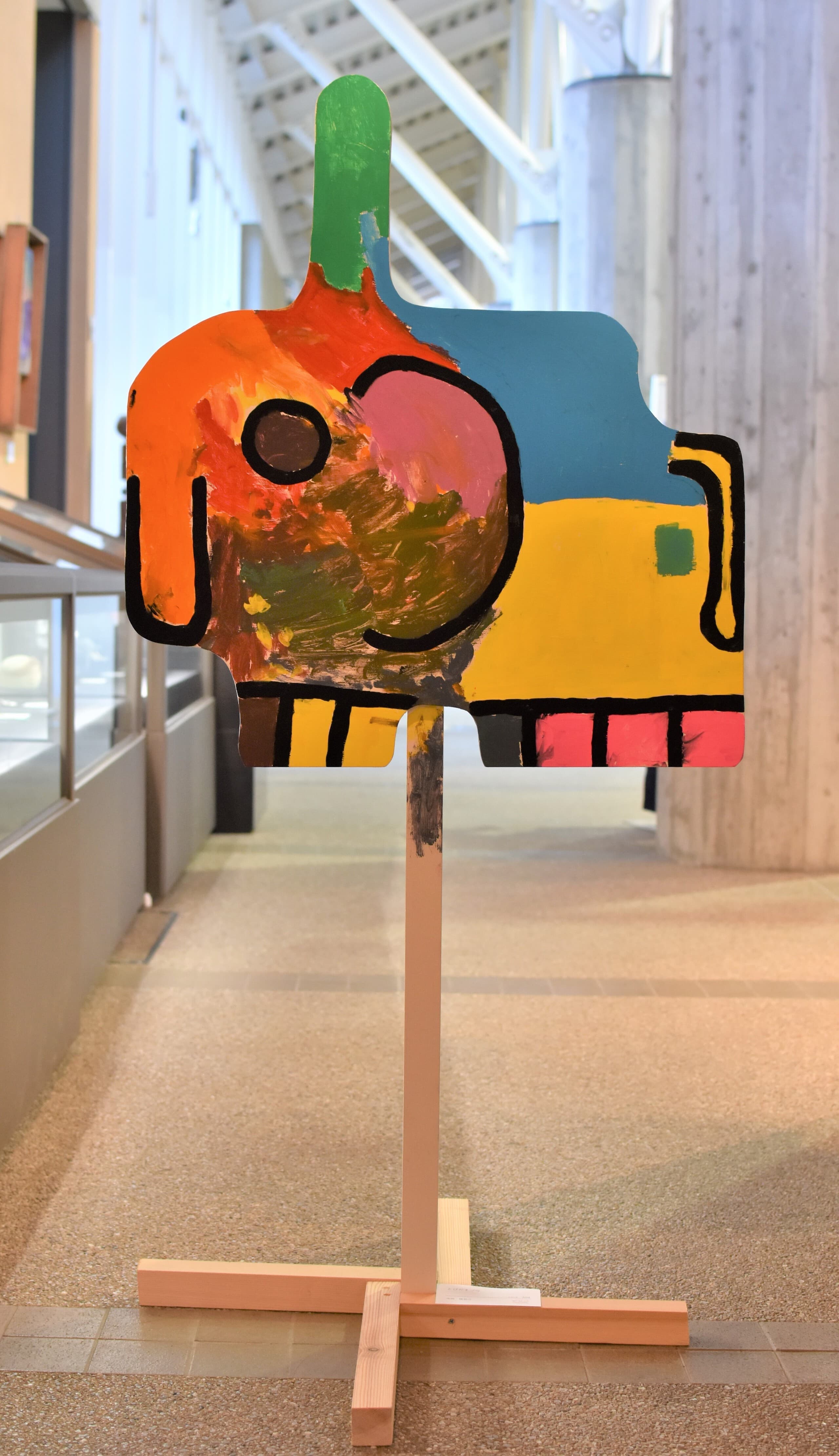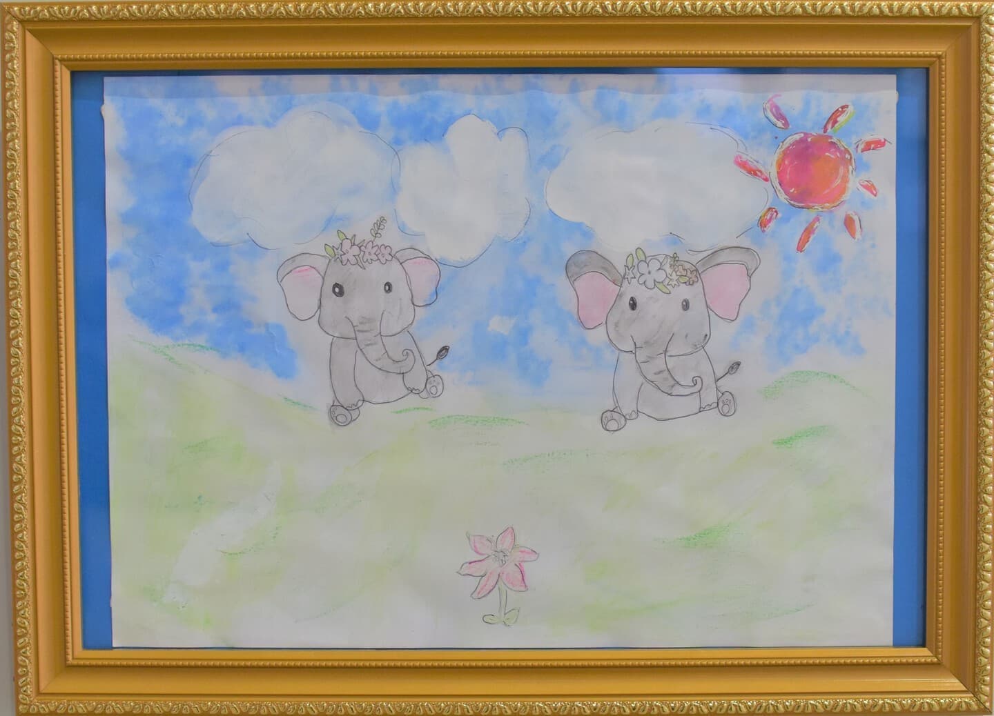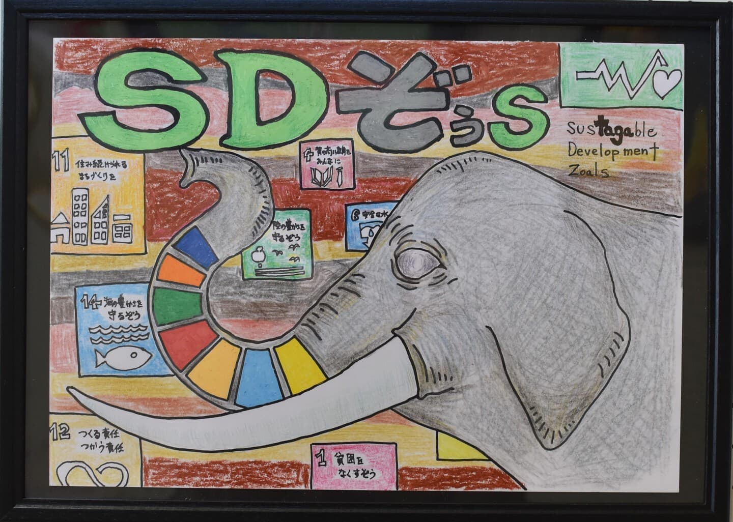 一番多くの応募がありました平面作品!展示会場は色とりどりの優しい顔をした象達の集結です!
