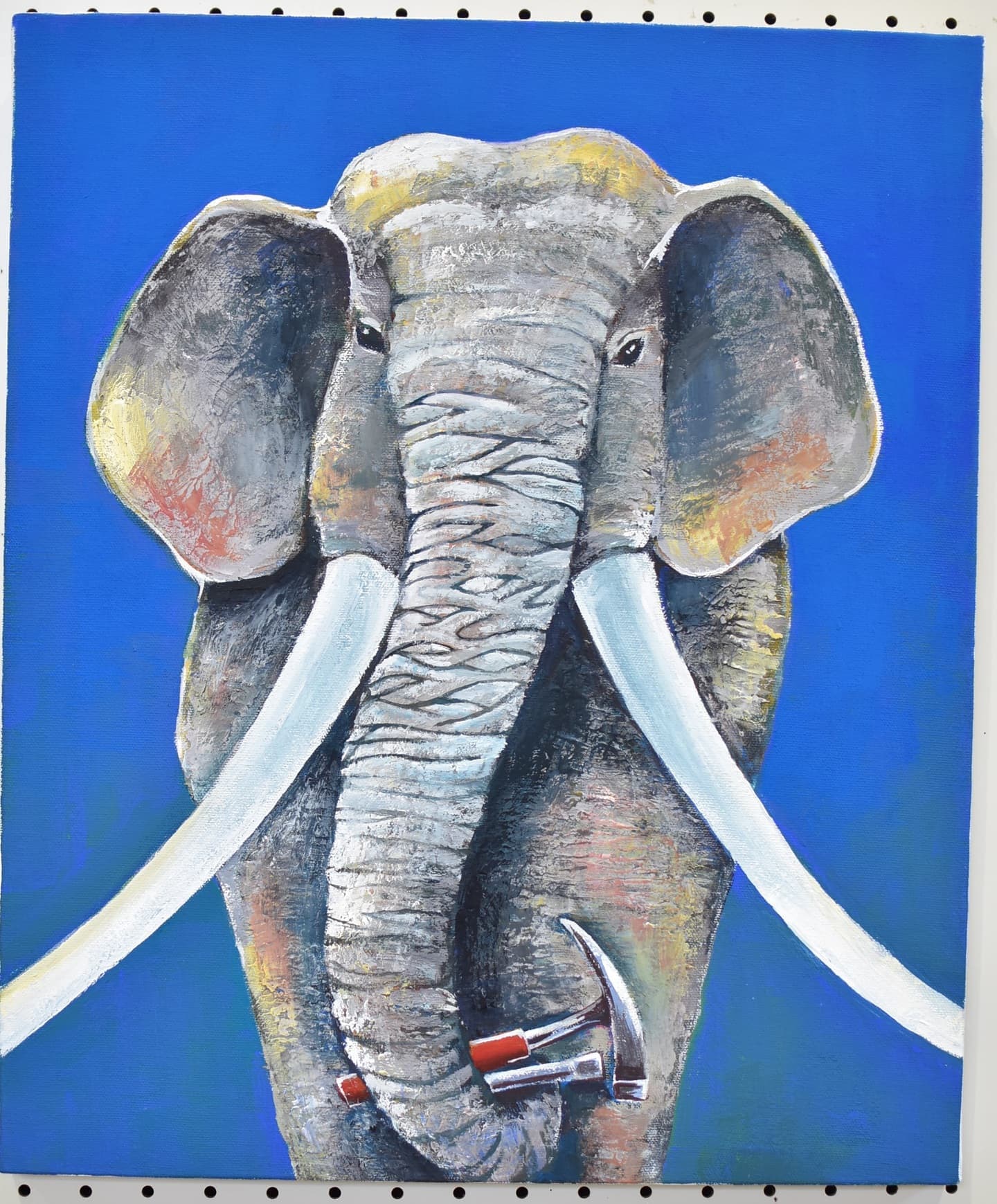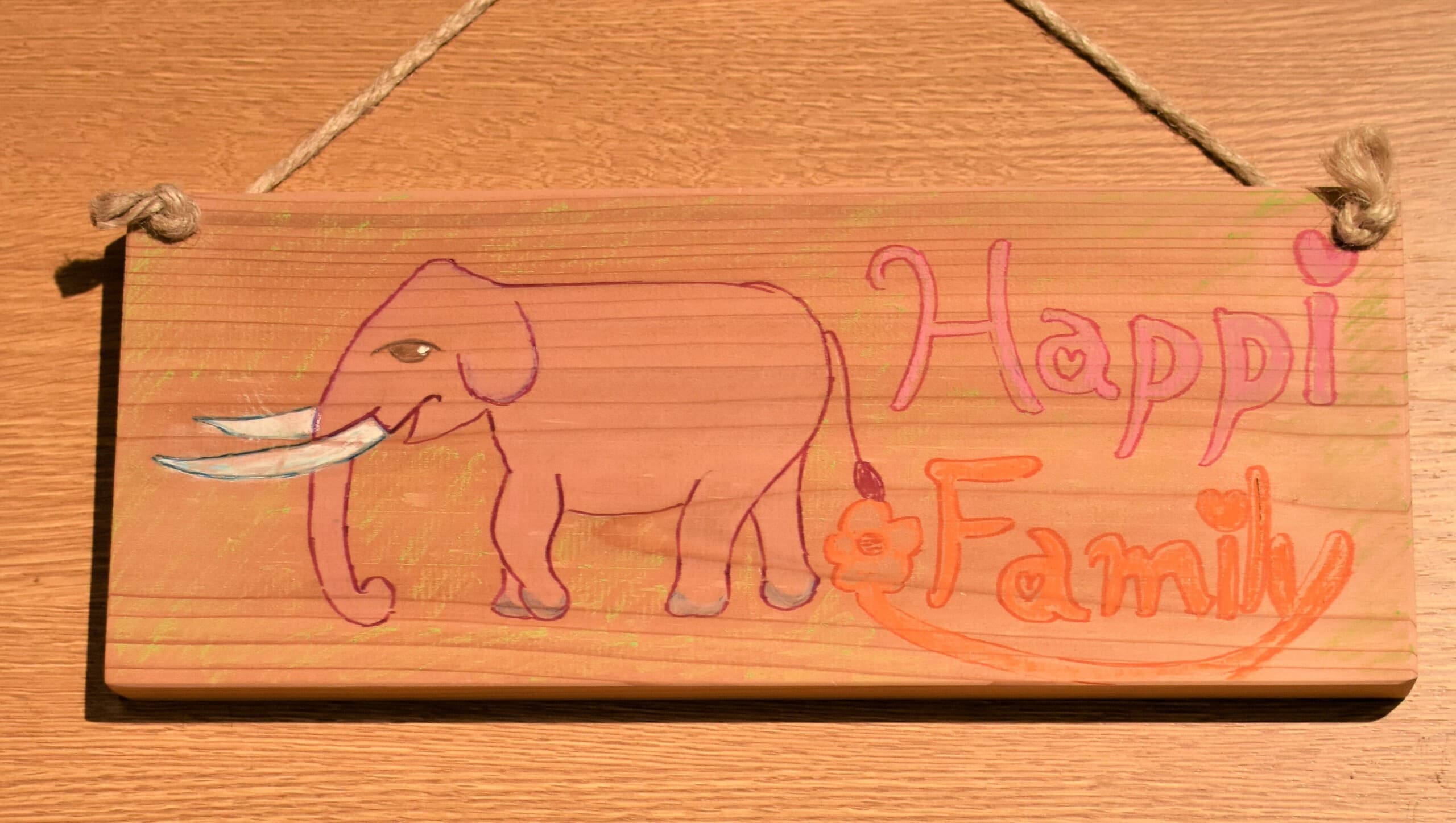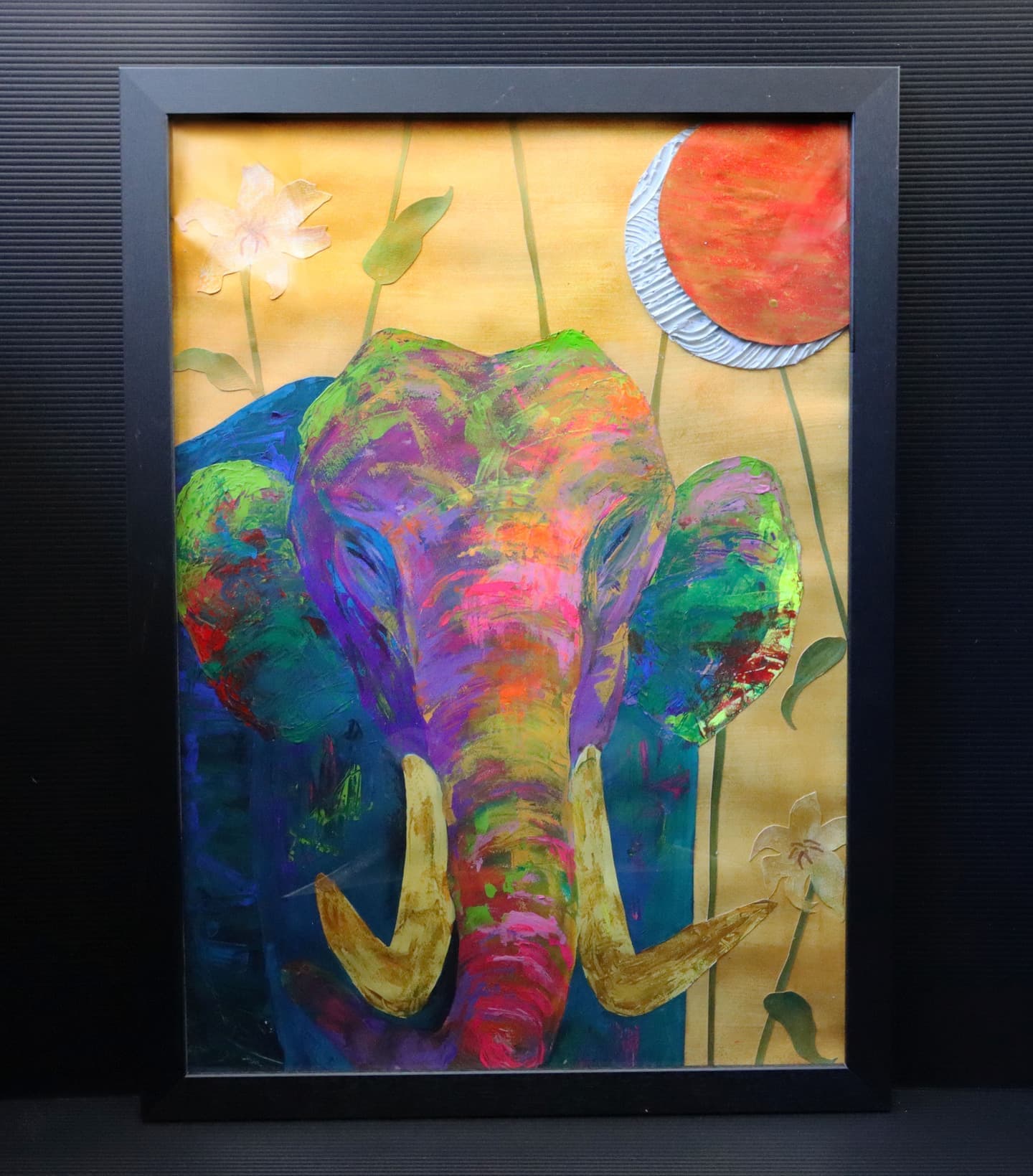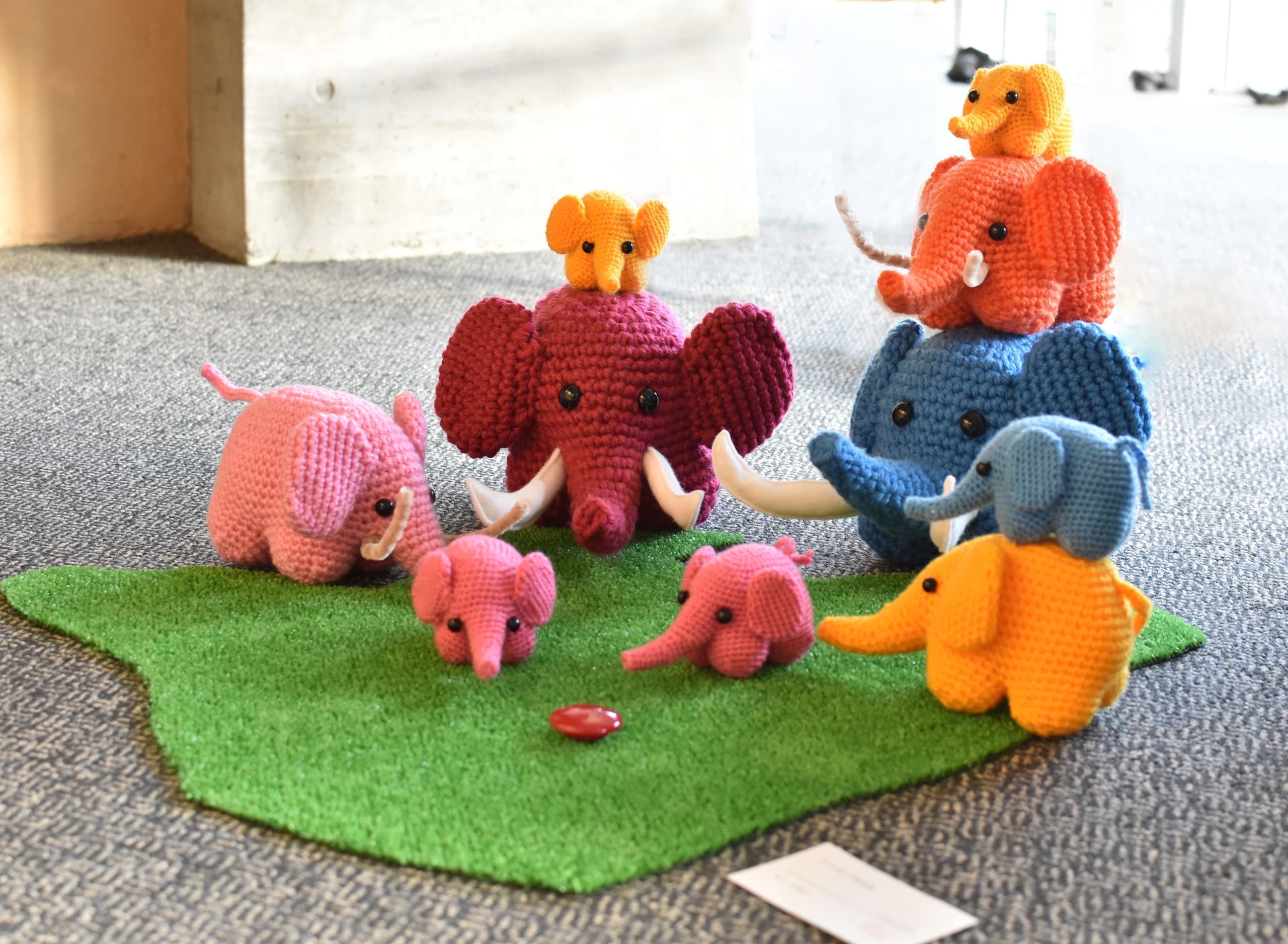 一番多くの応募がありました平面作品!展示会場は色とりどりの優しい顔をした象達の集結です!