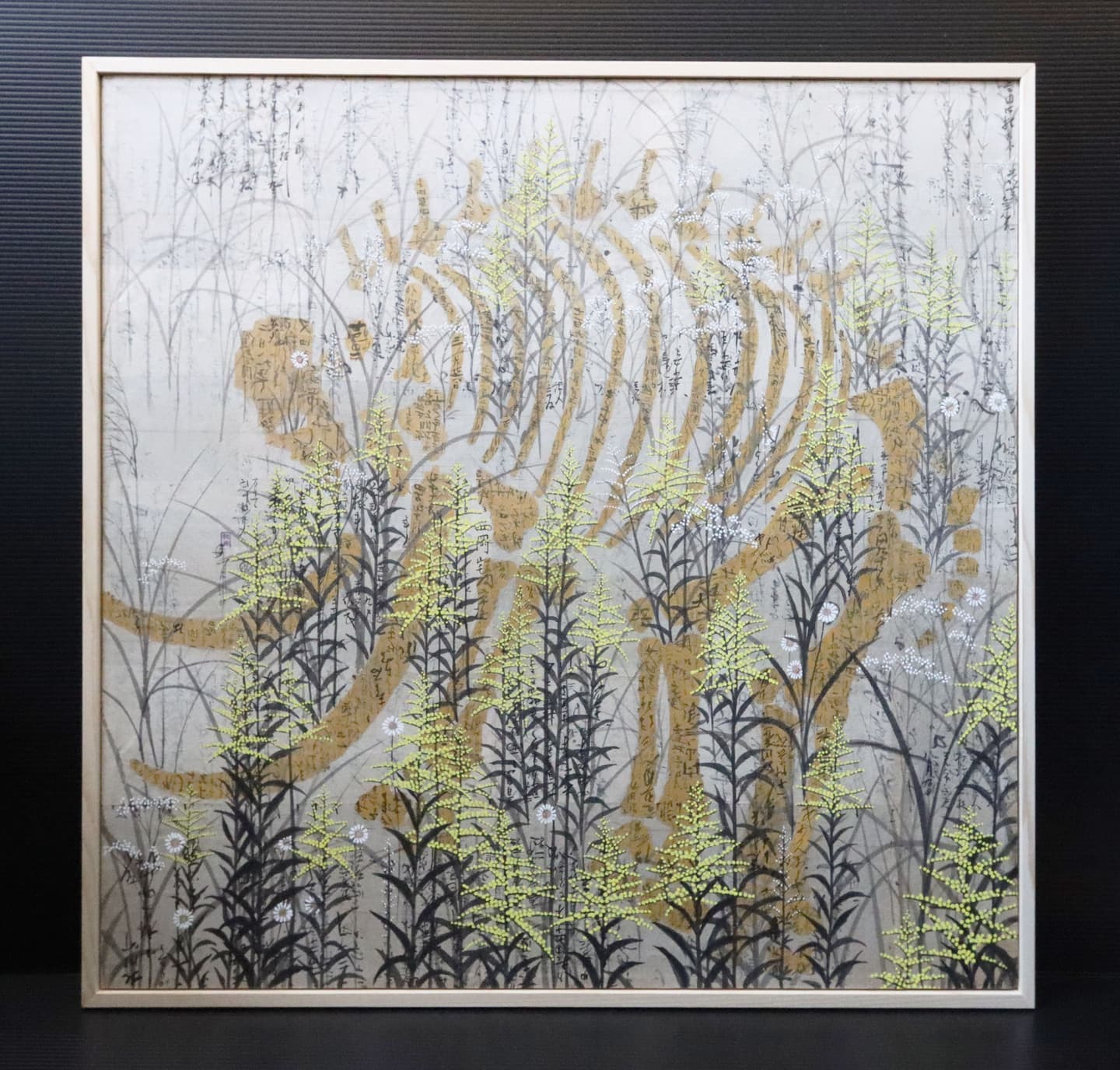 下地にうっすらと黄金比を割り出した図面が描かれているのは