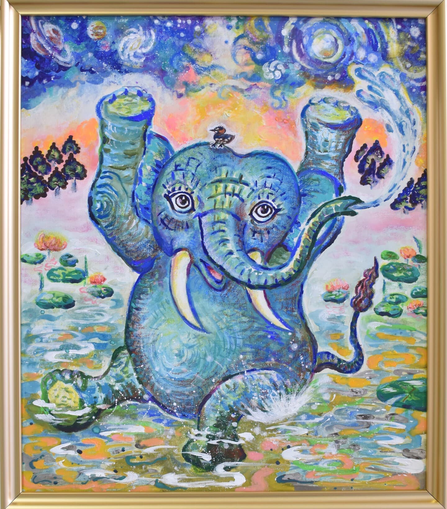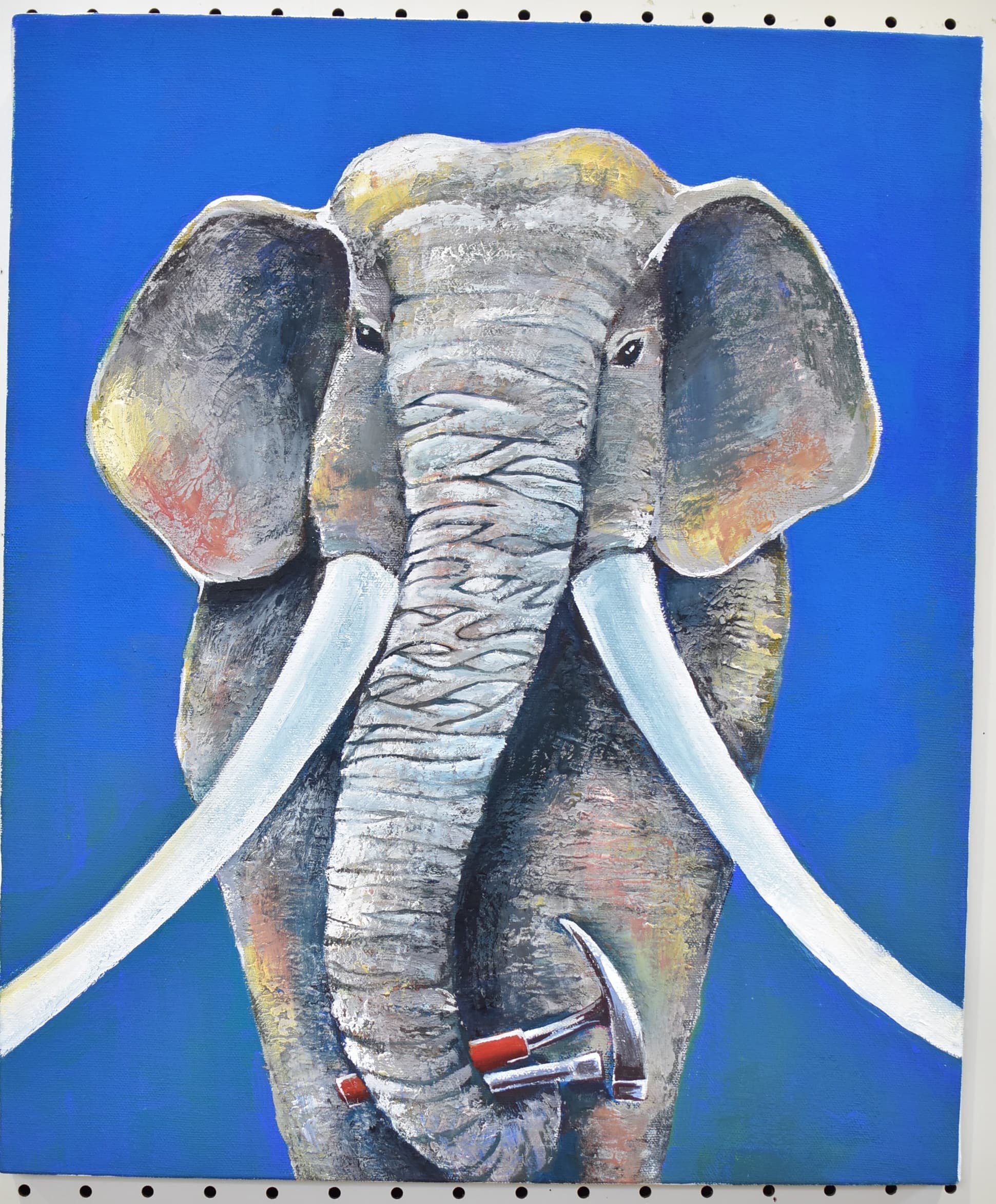 A35「春を待つ赤ちゃんゾウ」足立菊代