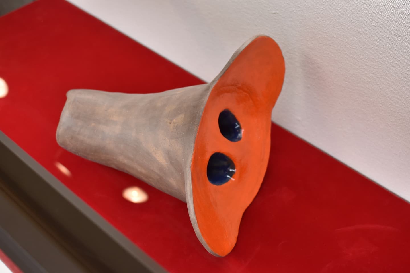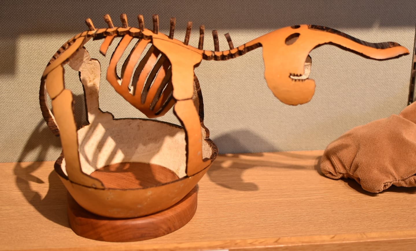 首の部分は弱いので内側で補強を入れ、ひょうたんの表面と台の木の部分は食物油コーティングしてあります。