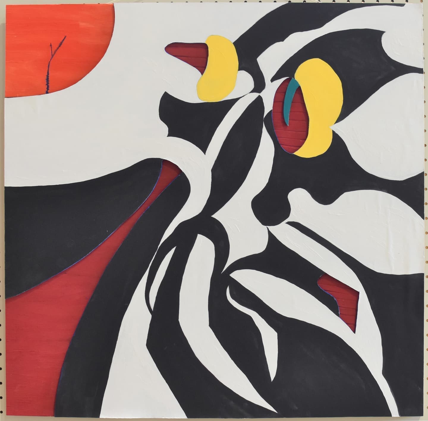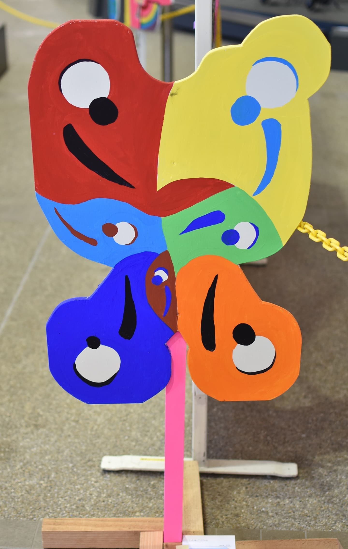個性象は、自分らしさのお面を表現しました。私が制作する時、独特な発想や直感的にアイディアを膨らませて行う事が多いからです。今回は、初めてのダンボールを使いました。ダンボールは、普段の日常として荷物や引越しなどを使われる事が多いですが…自分の新たな発見やダンボールの自由な表現や面白さに注目して欲しいです。
