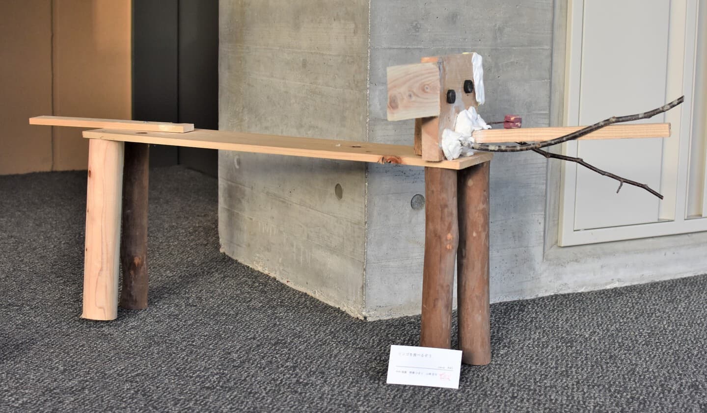 アケボノゾウがもし本当にいたら、アケボノゾウとふれ合いながら散歩したいという気持ちを込めました。また、昔のアケボノゾウはこんな感じだったのかなと思いながら作品を作りました。
