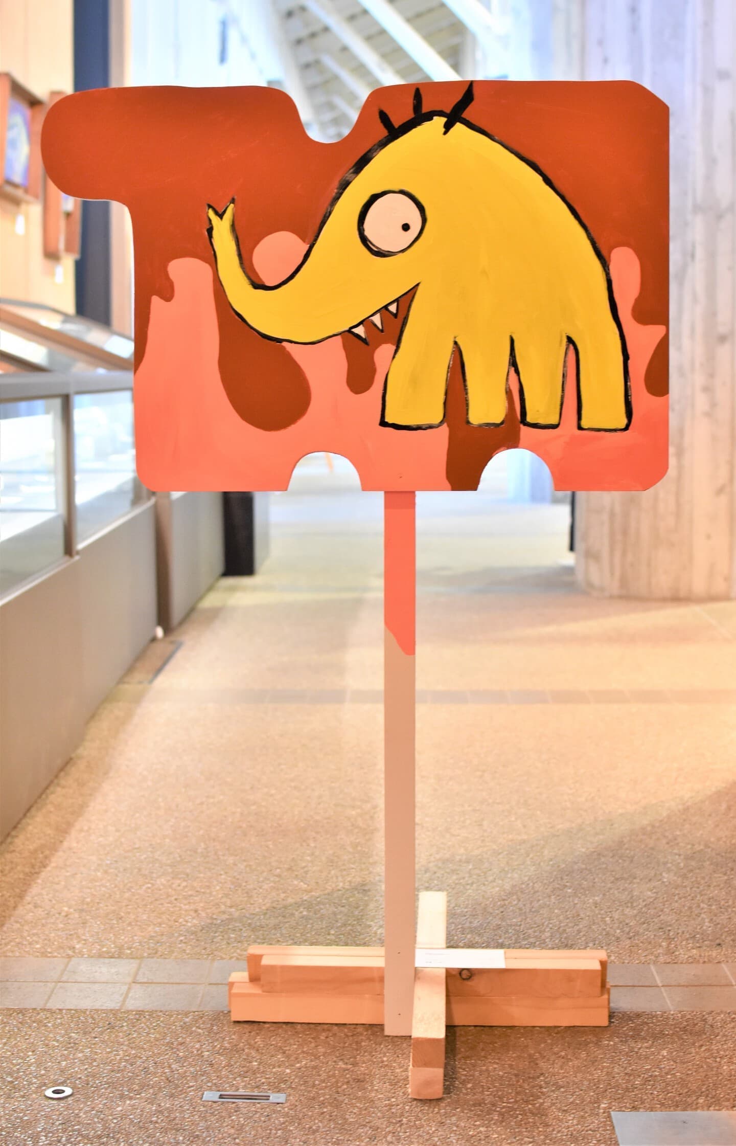 誰も見たことが無い「しがたがぞう」、自由に描いてみました。そして版画の技法上、偶然性も手伝って「これってゾウなの?」てなる作品が出来ました。いやぁ、楽しかった!