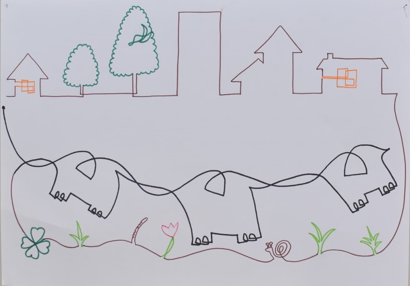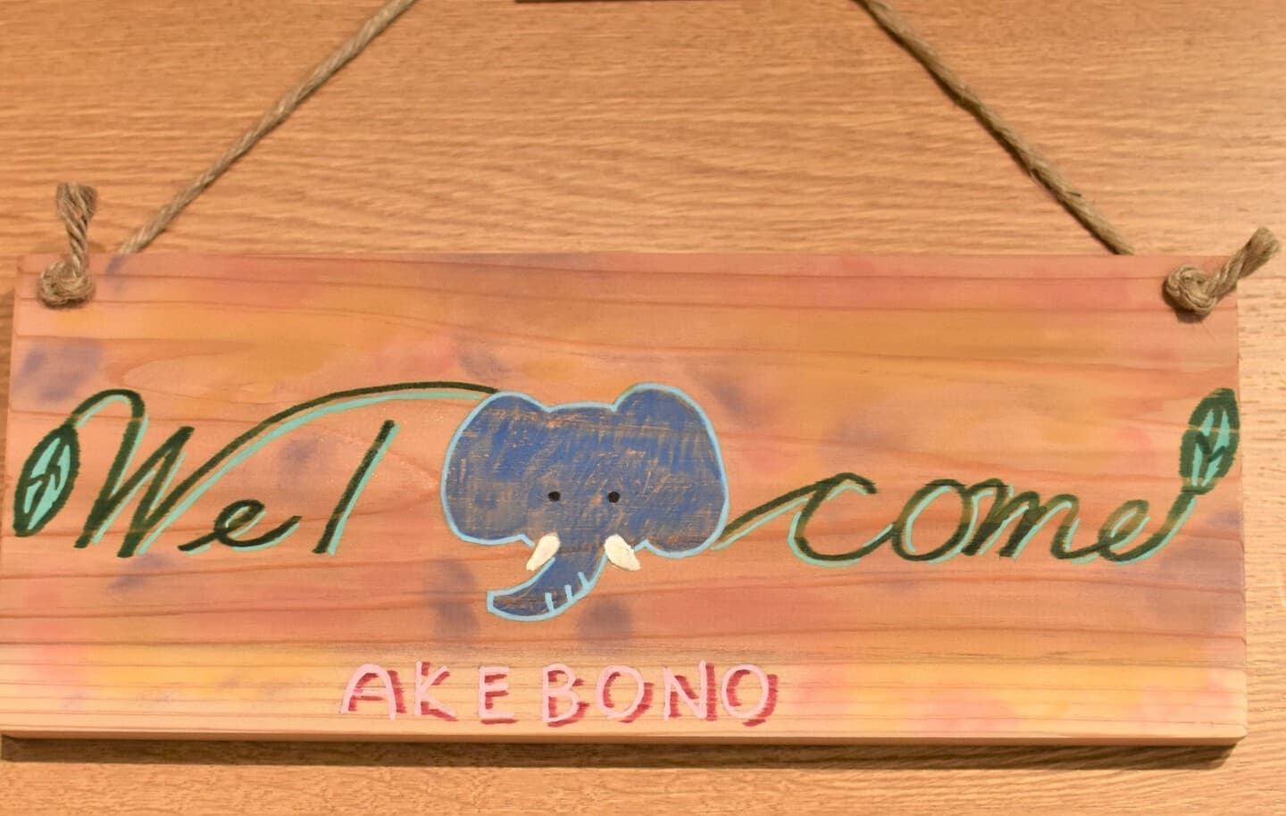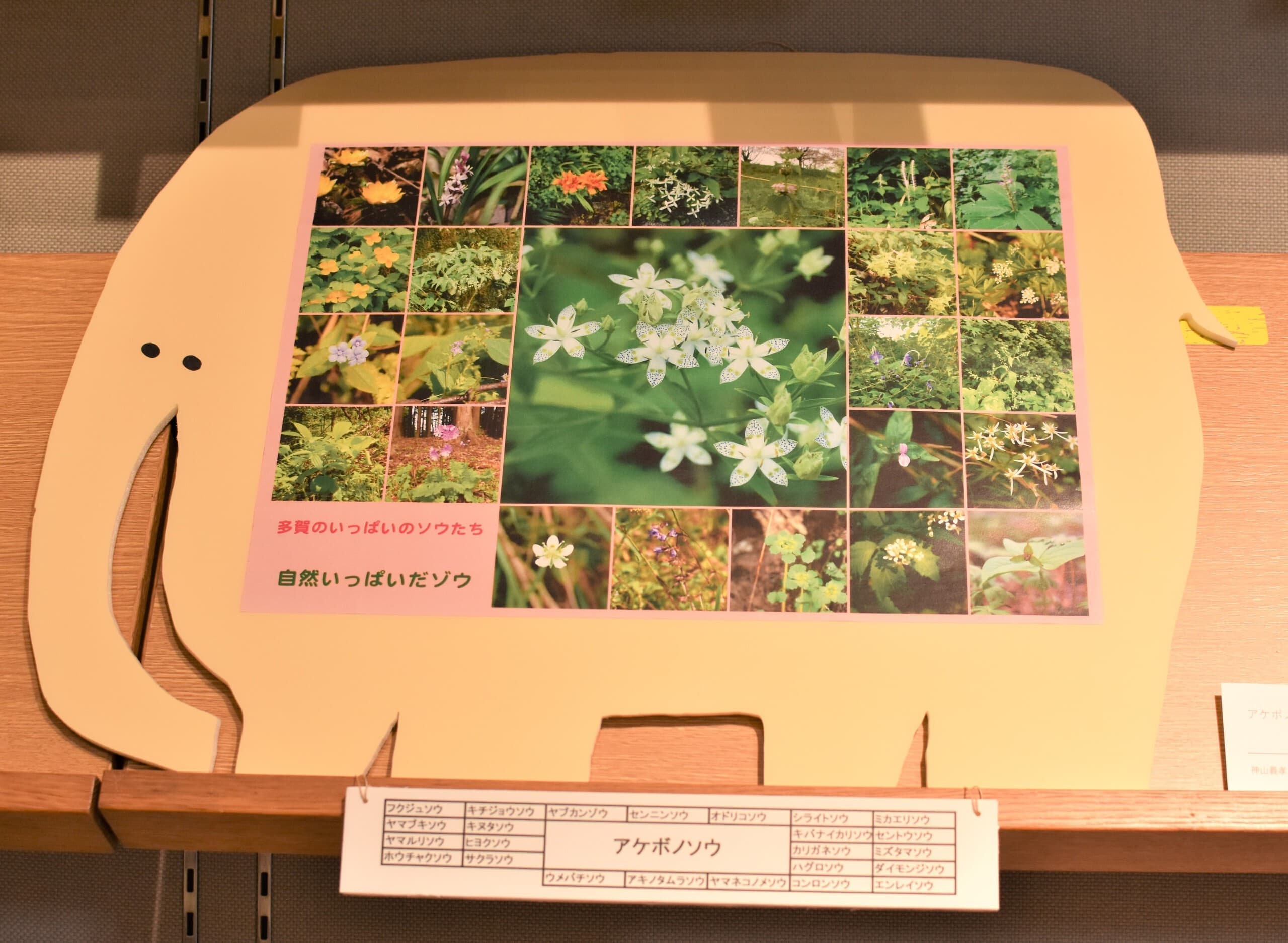 もうすぐ4歳になる娘と一緒に作りました。少し親が誘導しましたが、葉っぱの配置や出てきた言葉はほとんど娘が考えました。作品の最後にアケボノゾウの特徴の一つである長いキバをどれにするか、頑張って探して『これがいいね♫』と大満足で娘が決めました。どれがキバか見つけてもらえたら嬉しいです★