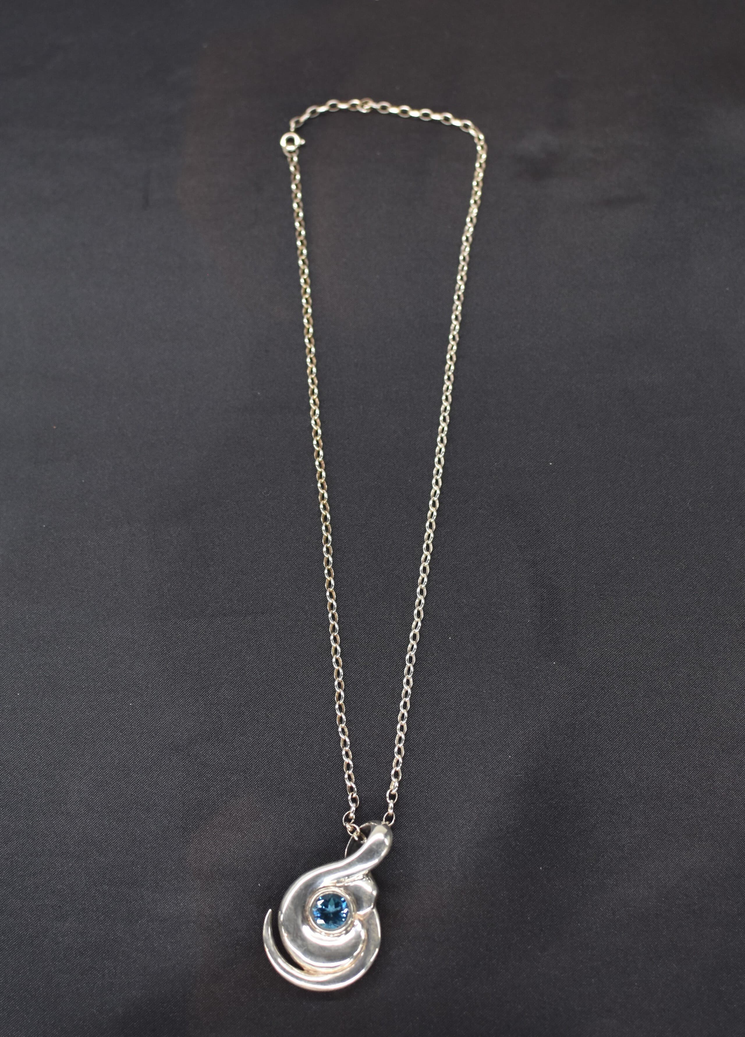 アケボノゾウの鼻と長い牙の向こうに、青い空が見えています。アケボノゾウが多賀で栄えていた時代から変らぬ青空が、今でも多賀の上に広がっています。リバーシブルのペンダントで、もう片方には象の鼻のしわが彫りぬいてあり、黒く染められています。