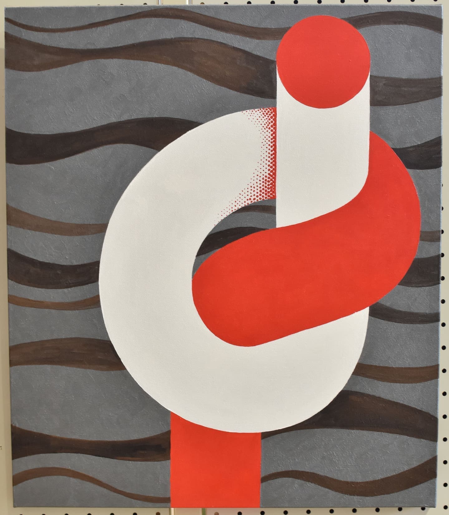 シガタガゾウの化石を陶芸で表現してみました。手びねりで白と赤の土を交互につみあげて化石が埋まっている地層をイメージしています。多賀の地から化石が発掘されるリアル感を出したいと思ったので釉薬はつけずに焼いています。