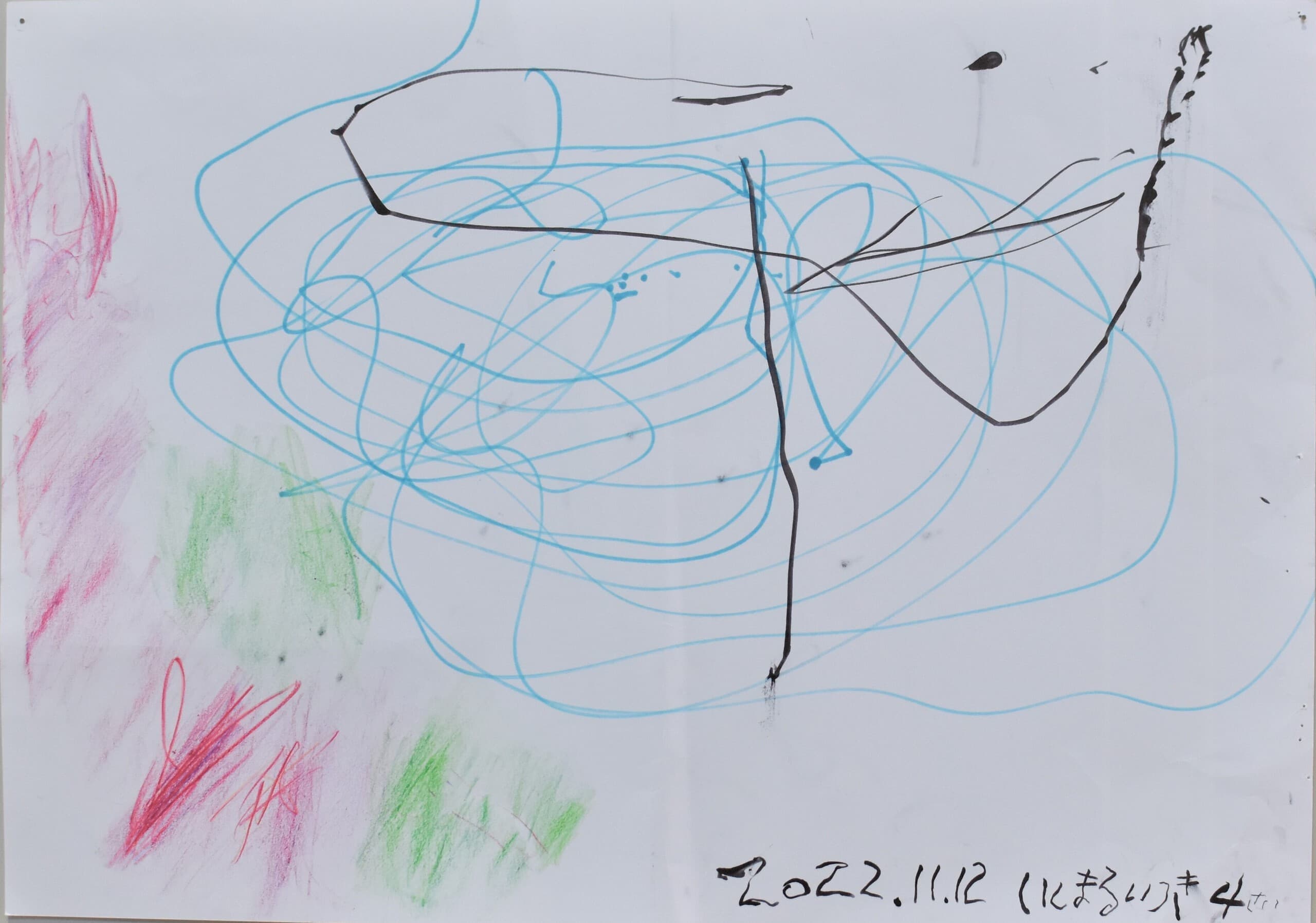 江村空な、江村海の、江村安海、江村耕市の家族4人で一緒にアケボノゾウを描きました。描きながらいくつかの会話とともに聞こえてくるいろんな音が録音されました。2023年3月の記憶と記録です。