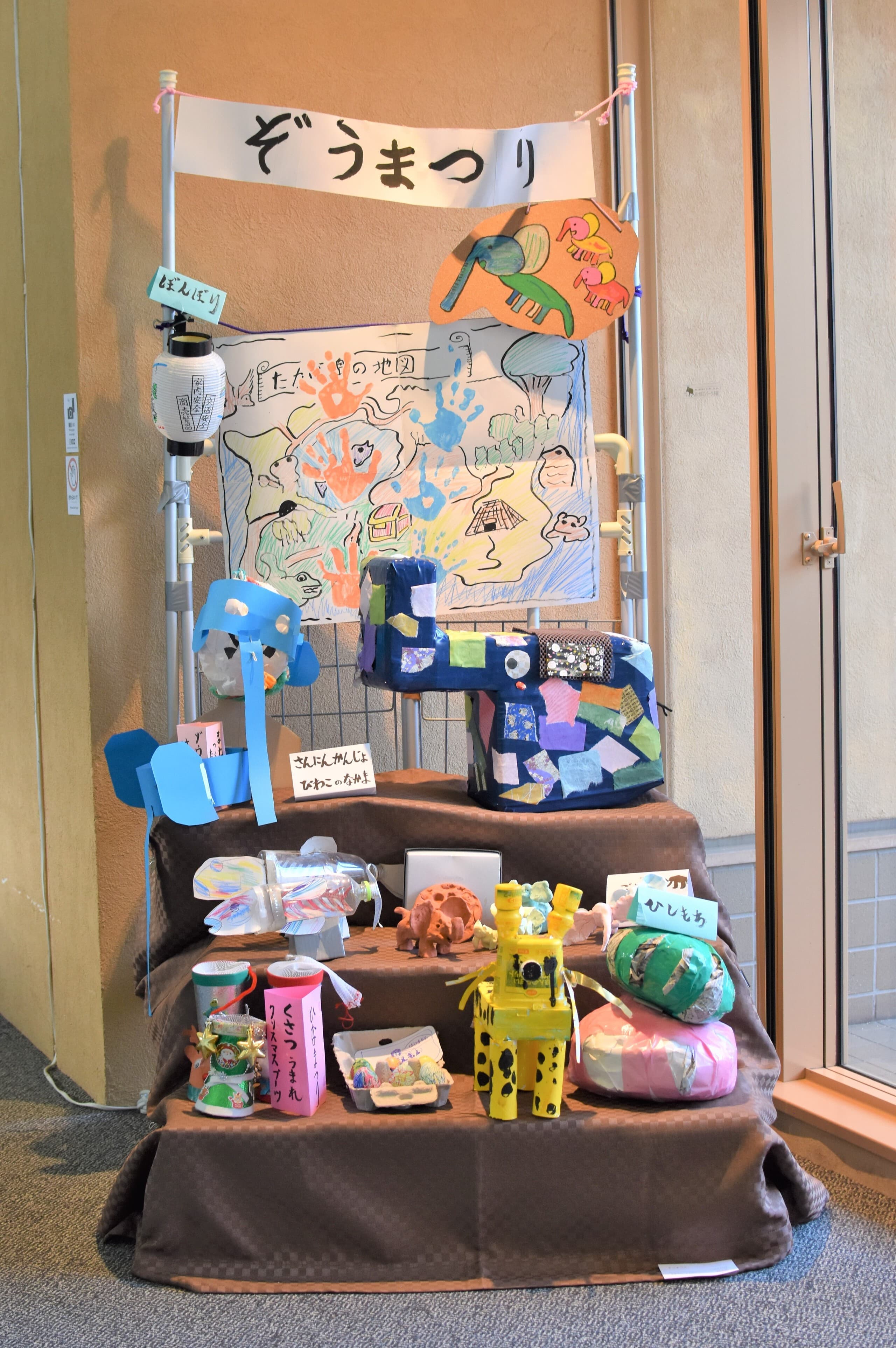 巨大なアケボノゾウに思いを馳せ、かわいい赤ちゃんゾウを制作しました。材料は手袋です。サッカーボールは綿を丸めました。♪ぞうさん ぞうさん お鼻が長いのね そうよ 母さんも長いのよ♪ながいお鼻を生かしました。早く春が来てみんなが幸せになりますように。