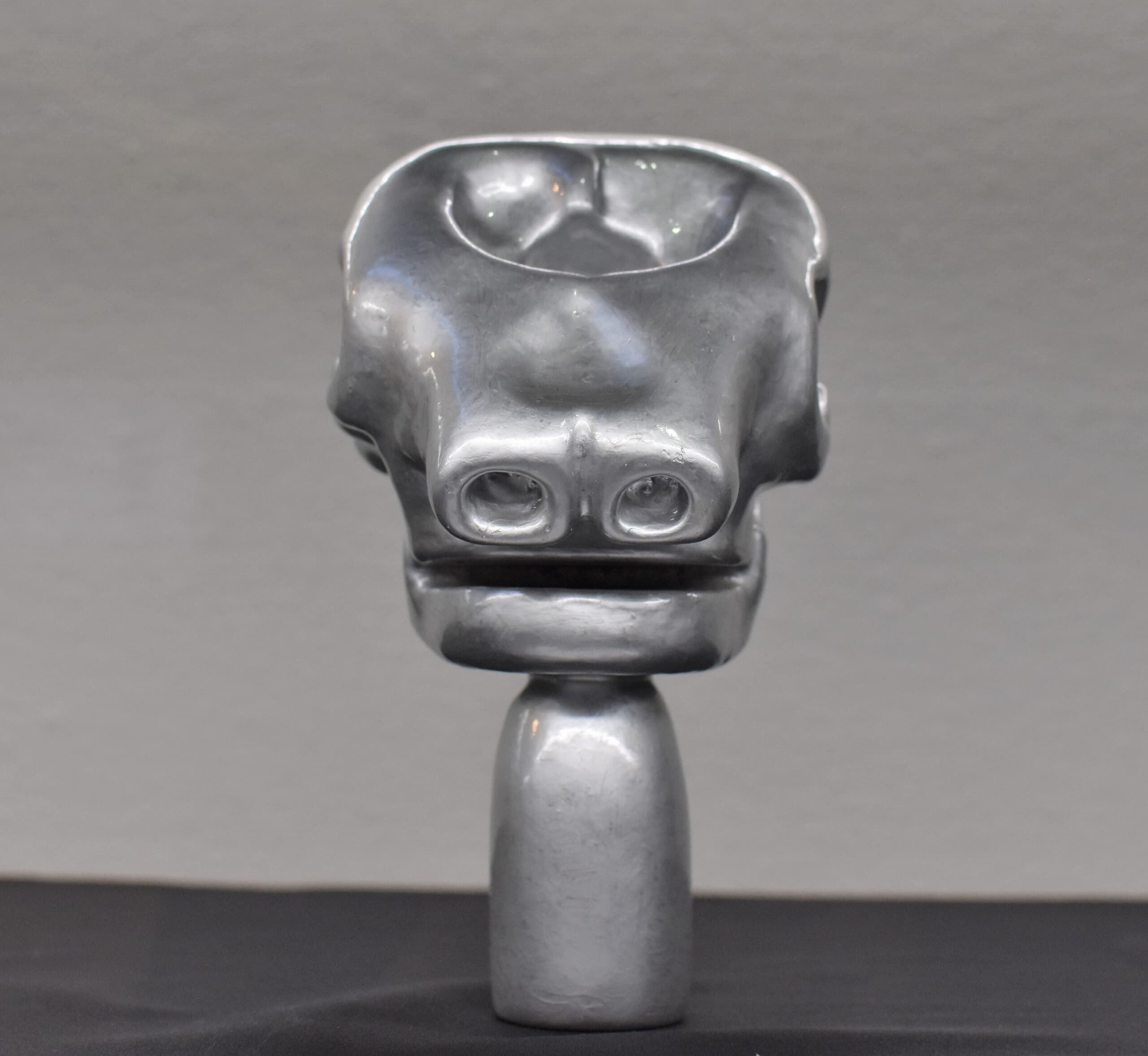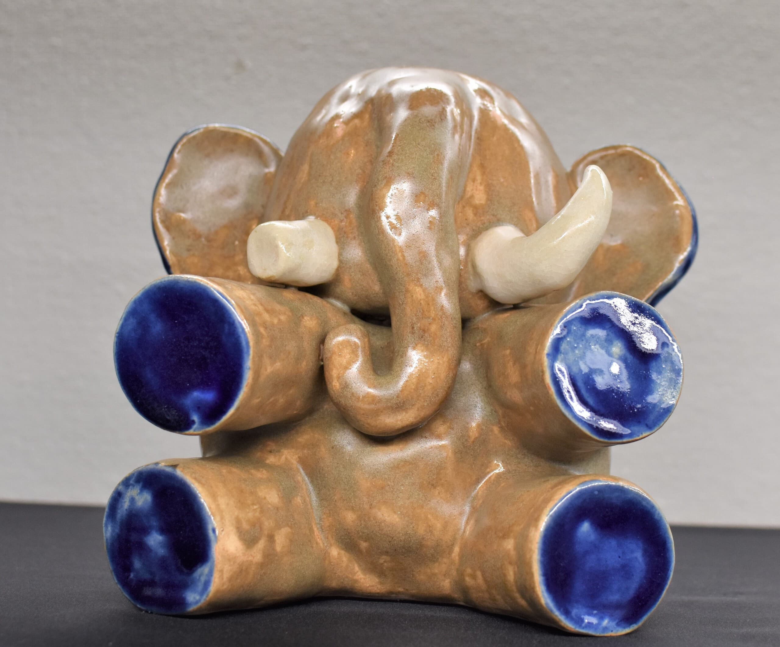 象には、上唇が無く、鼻が上唇を兼ねているということ、長いはなの穴も二つ、手のような使い方が出来る事など、人間とは違う感覚なんだろうな、と想像し、もし自分に象の鼻があったらどんな感じなんだろうという思いを込めた形にしました。