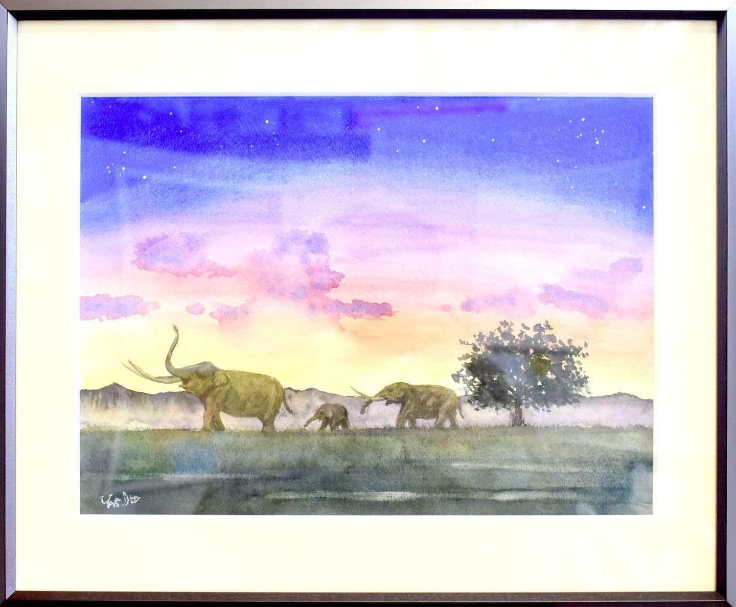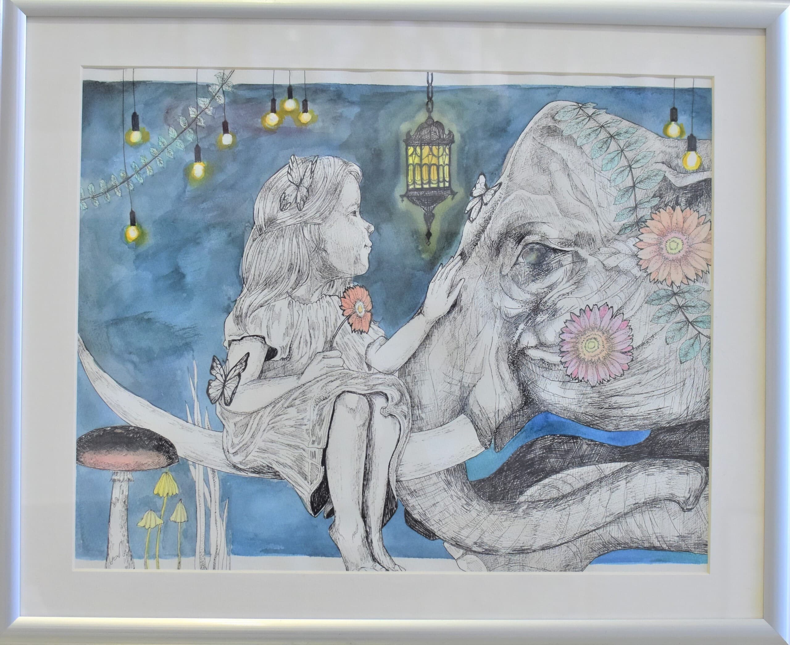 B245「夜空の下を歩く象」夏原優衣