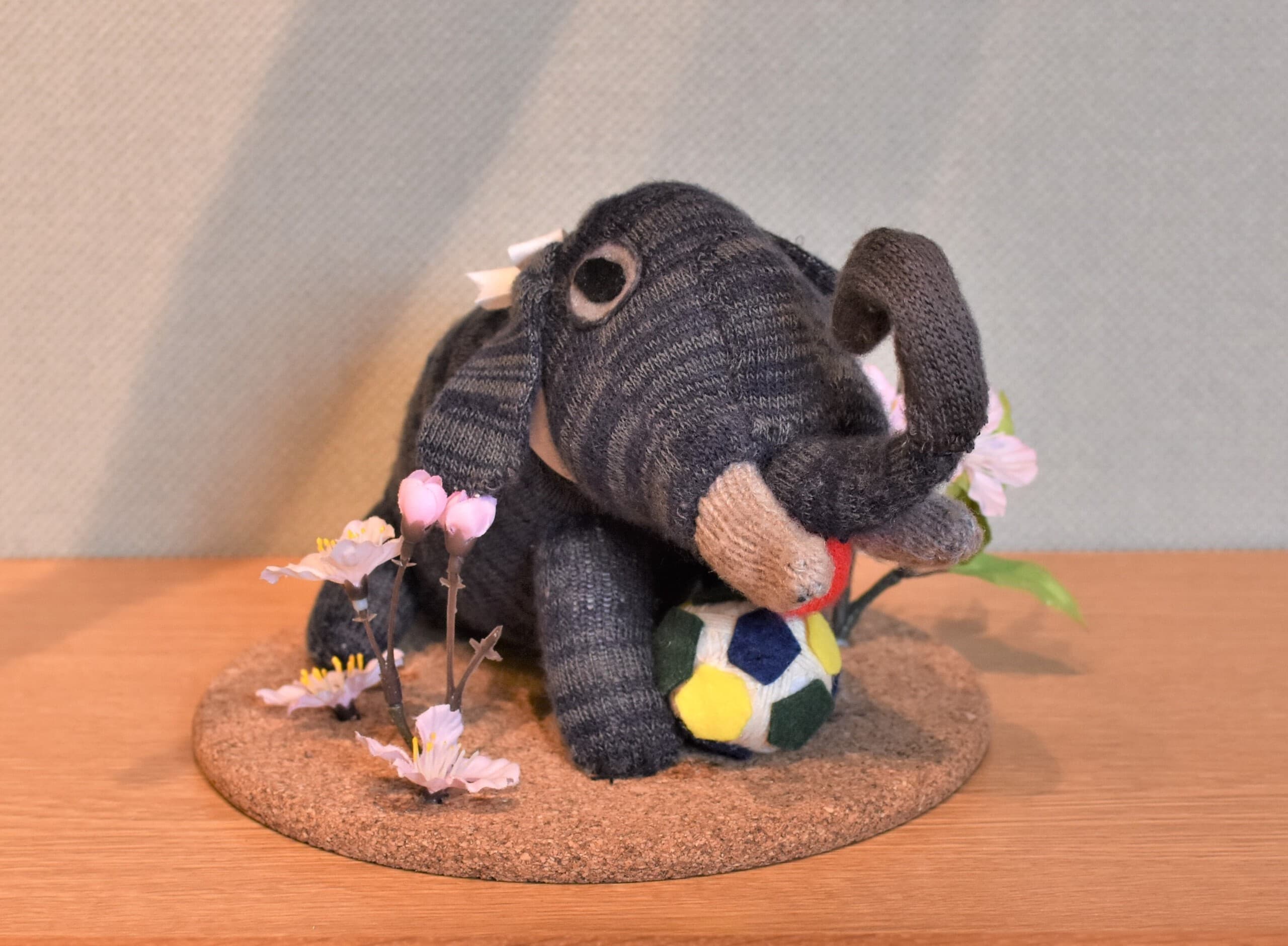巨大なアケボノゾウに思いを馳せ、かわいい赤ちゃんゾウを制作しました。材料は手袋です。サッカーボールは綿を丸めました。♪ぞうさん ぞうさん お鼻が長いのね そうよ 母さんも長いのよ♪ながいお鼻を生かしました。早く春が来てみんなが幸せになりますように。