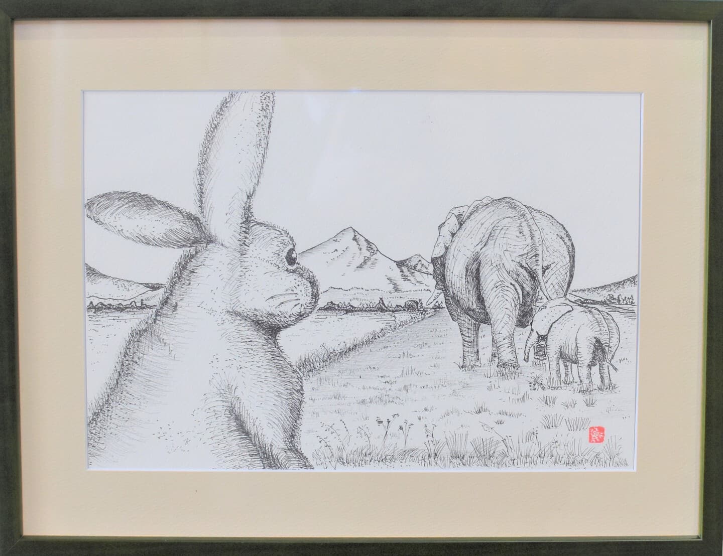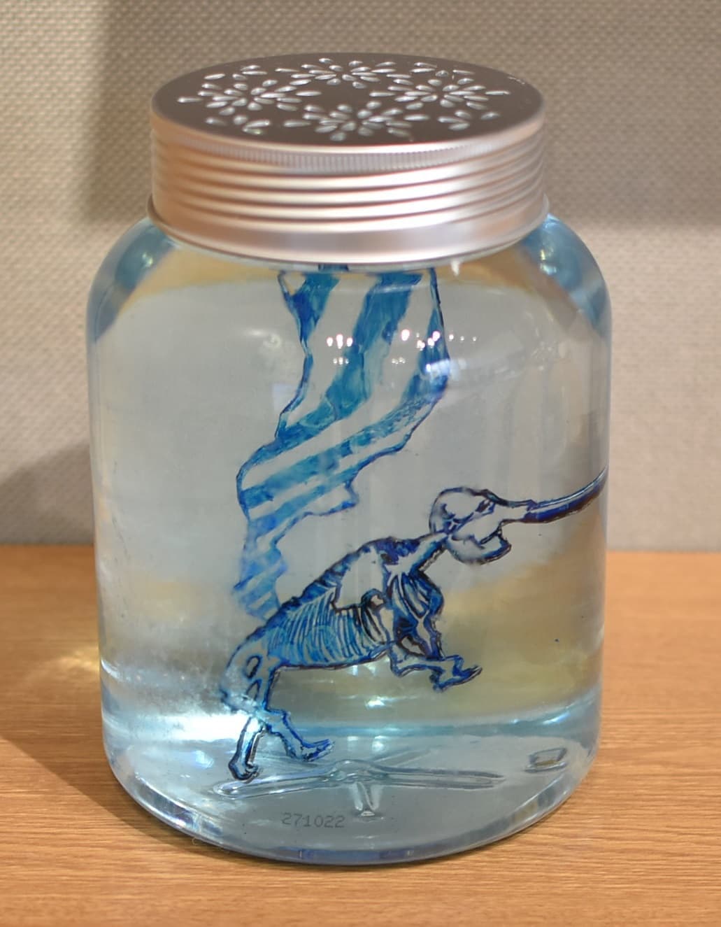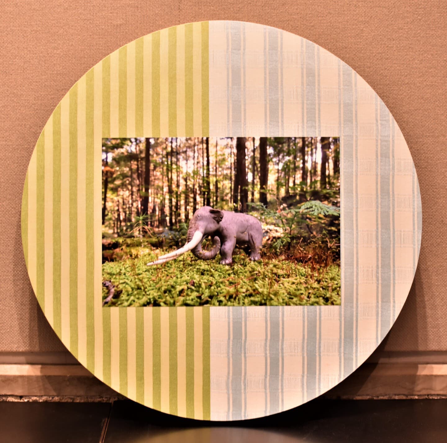 太古の森でアケボノゾウ同士が出会った。鬱蒼とした木々の中に見えた姿。ひとりぼっちじゃなかった!呼びかけてみよう。なんだかちょっと体の色も模様も違うけど、それはそれ、違ったって嬉しい。そんなシチュエーションをグラスアートで表現してみました。