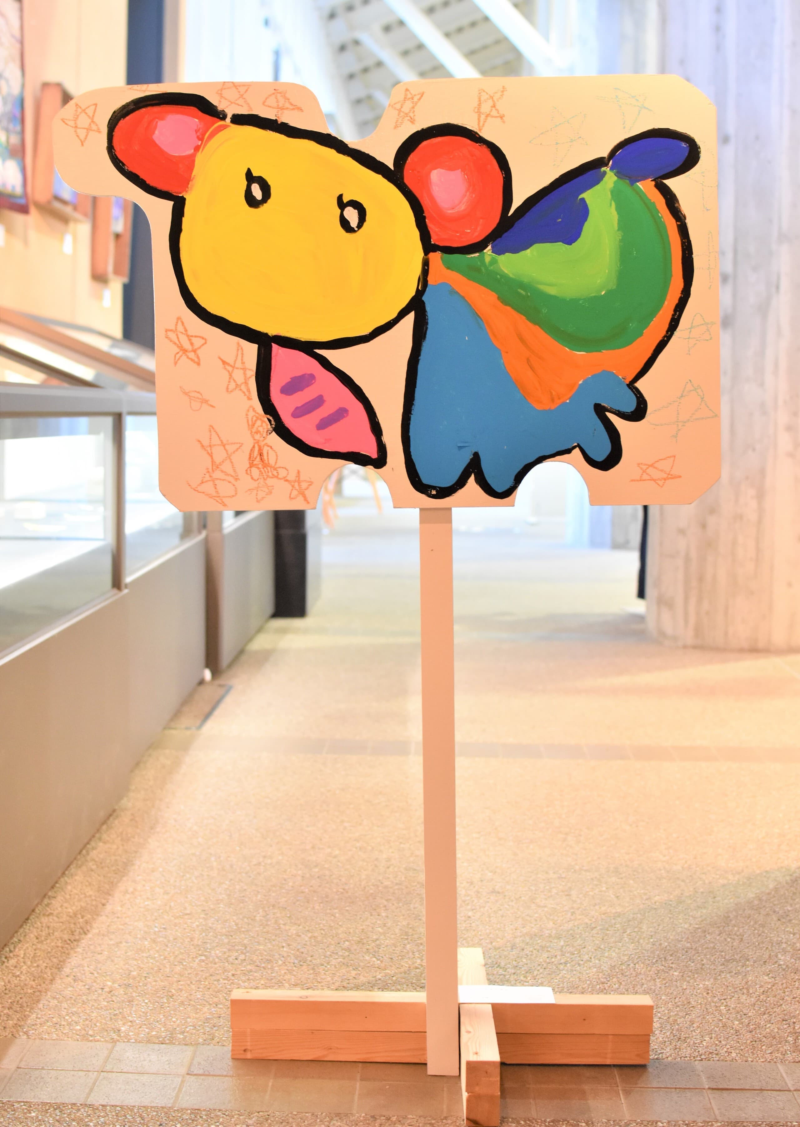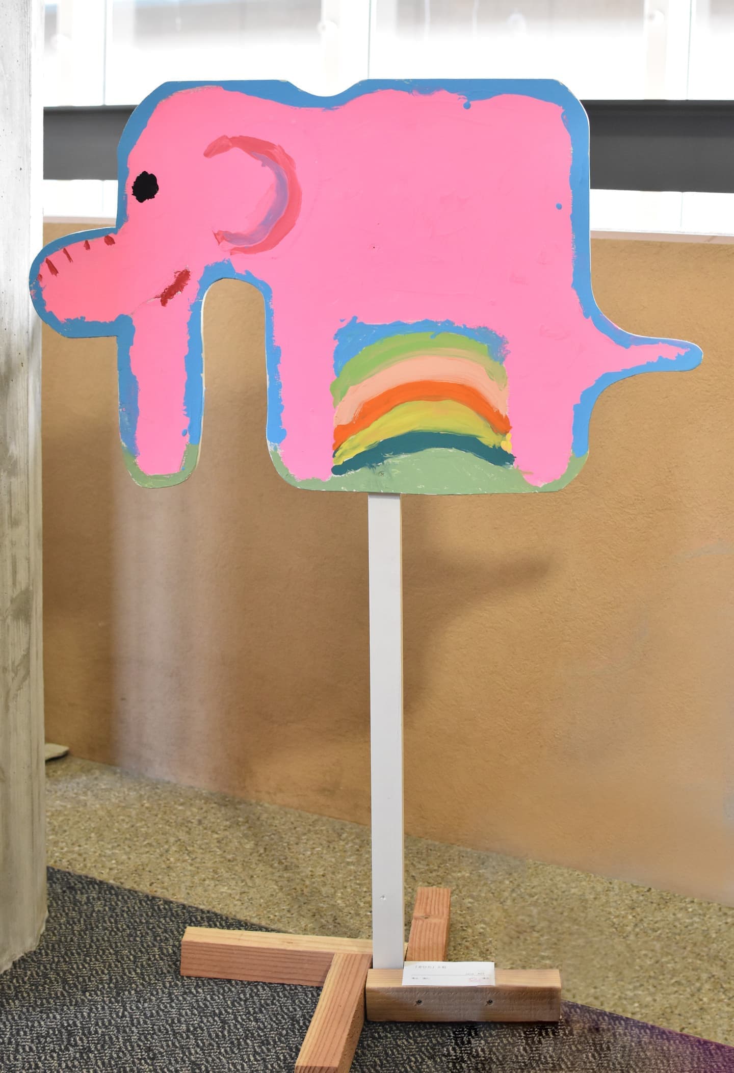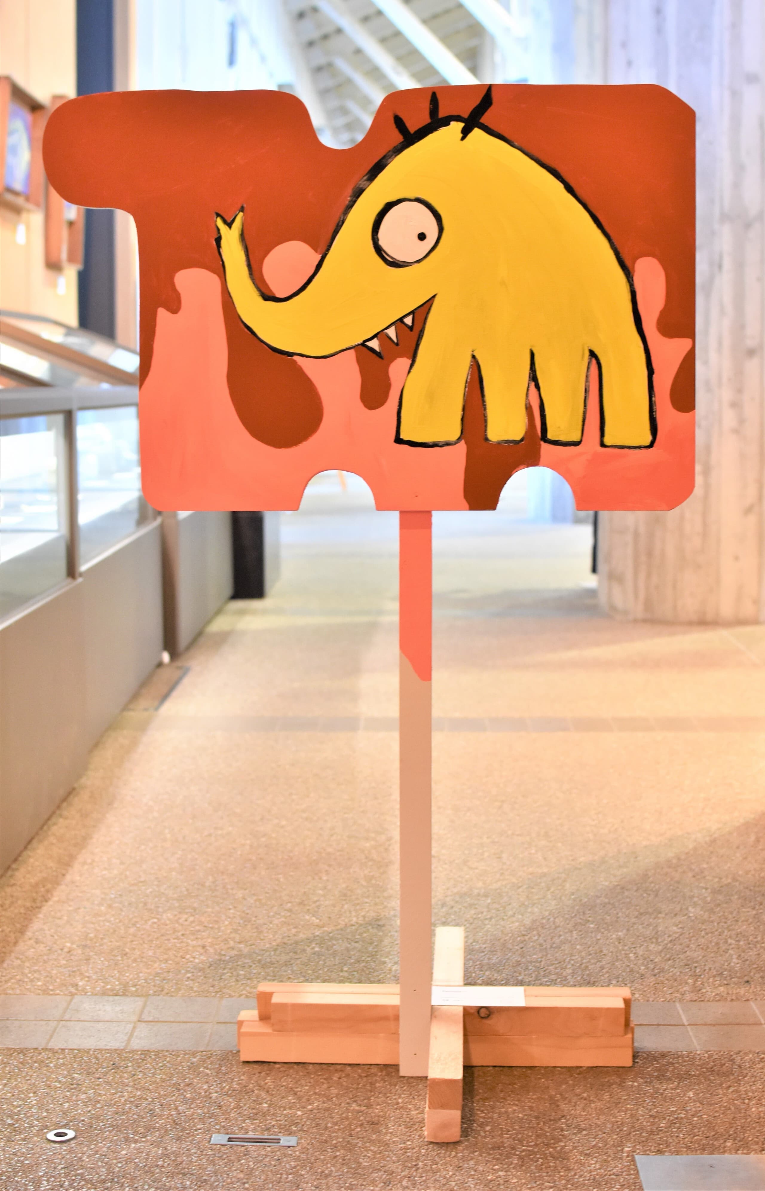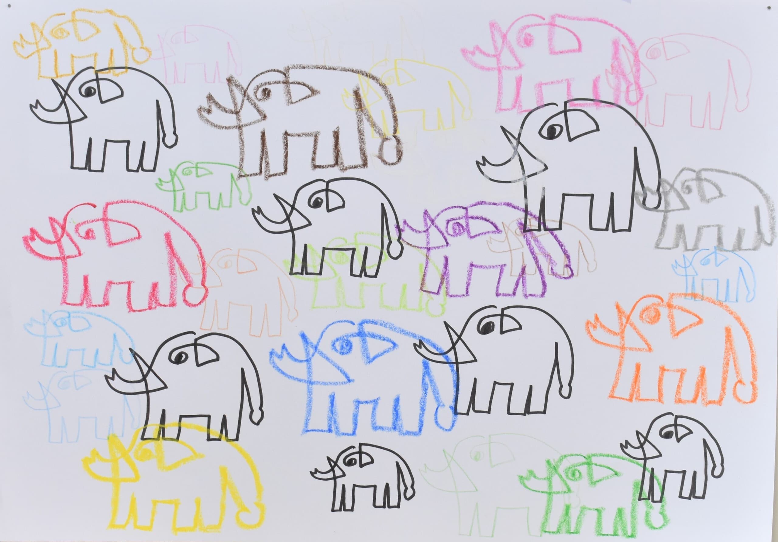 一番多くの応募がありました平面作品!展示会場は色とりどりの優しい顔をした象達の集結です!
