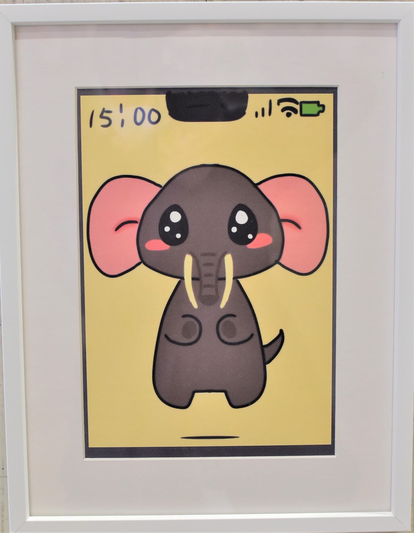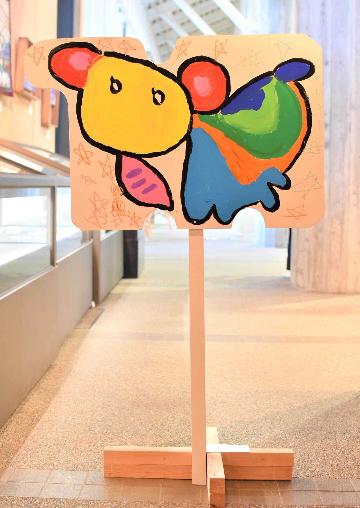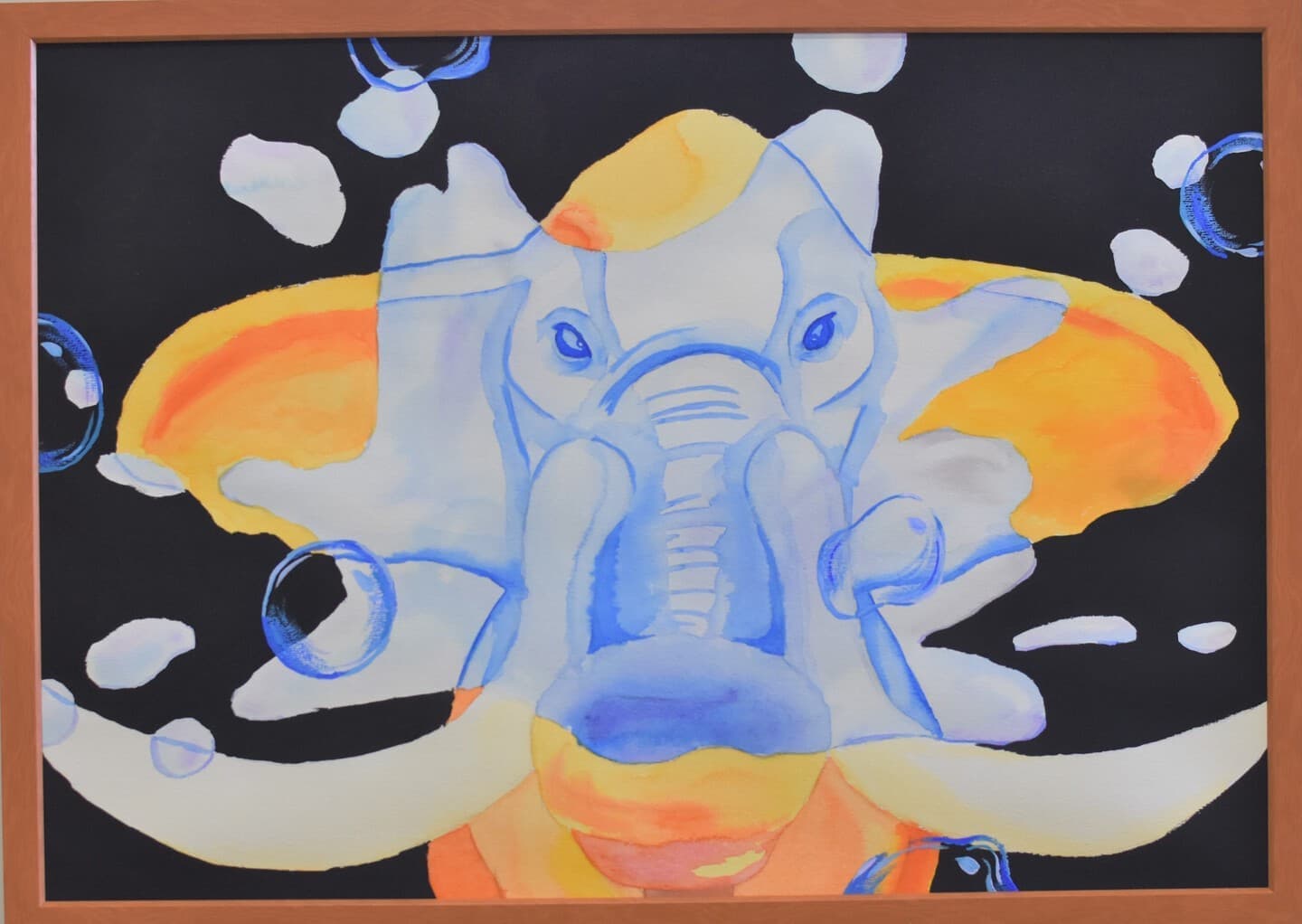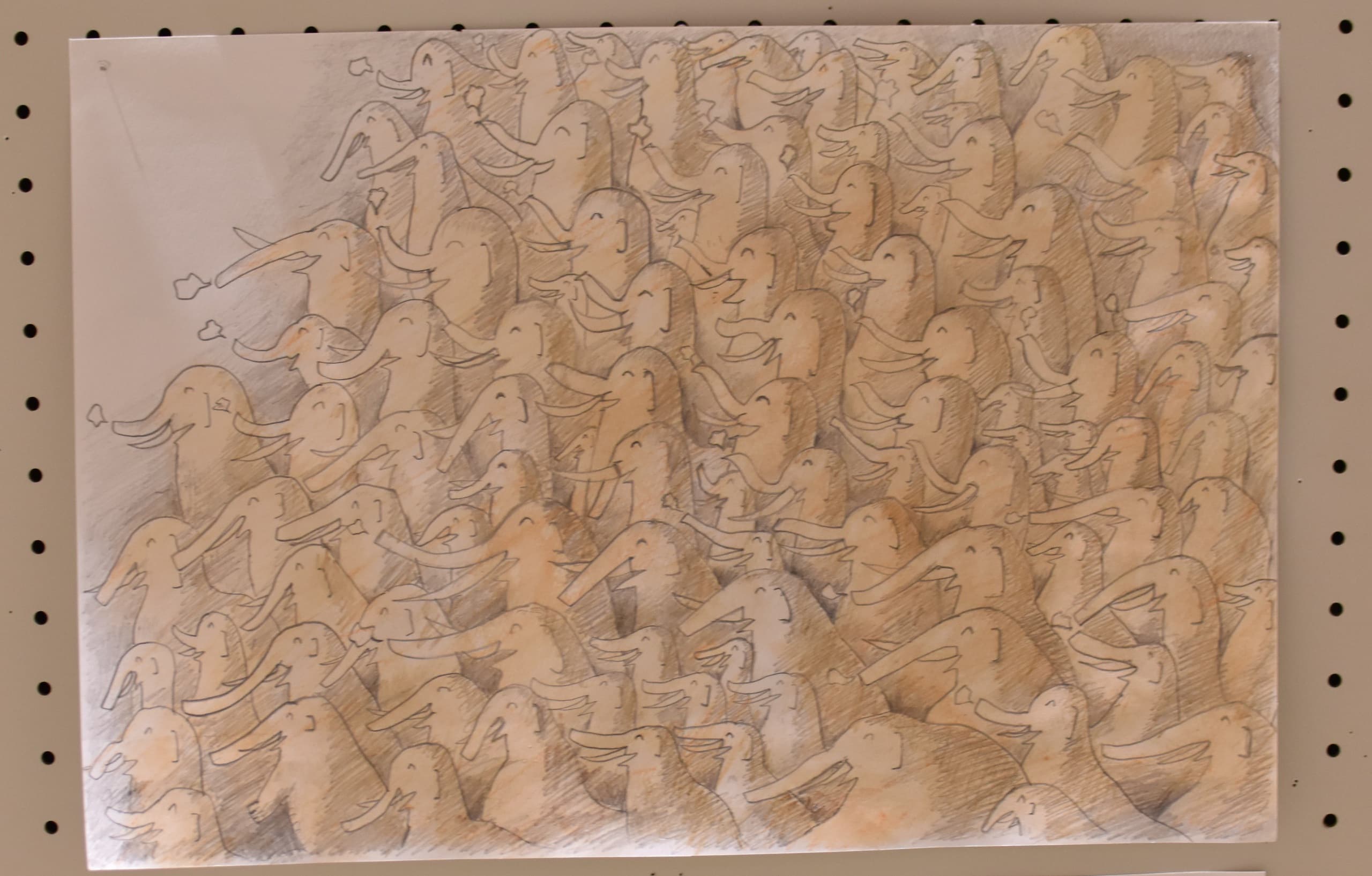 一番多くの応募がありました平面作品!展示会場は色とりどりの優しい顔をした象達の集結です!