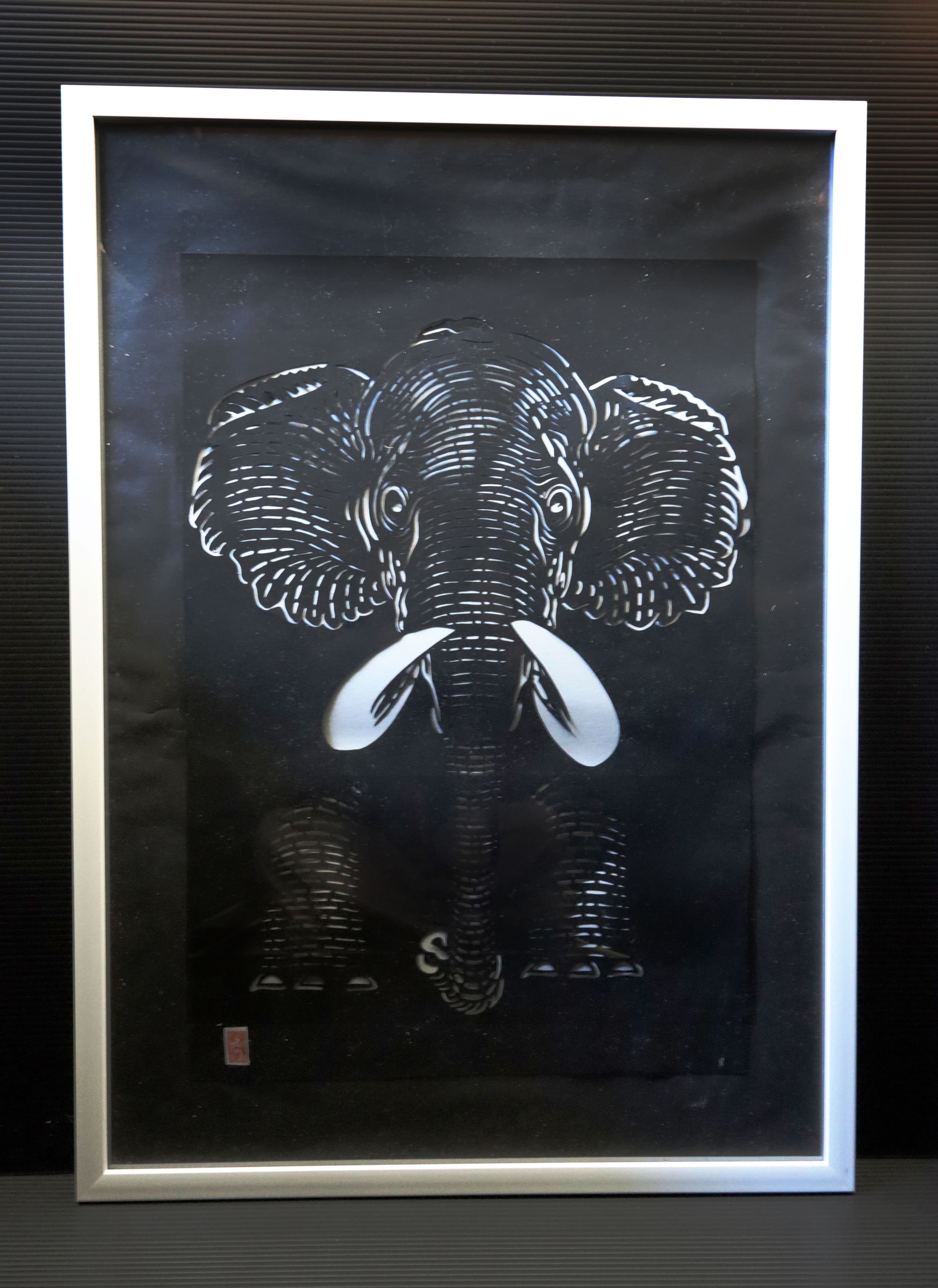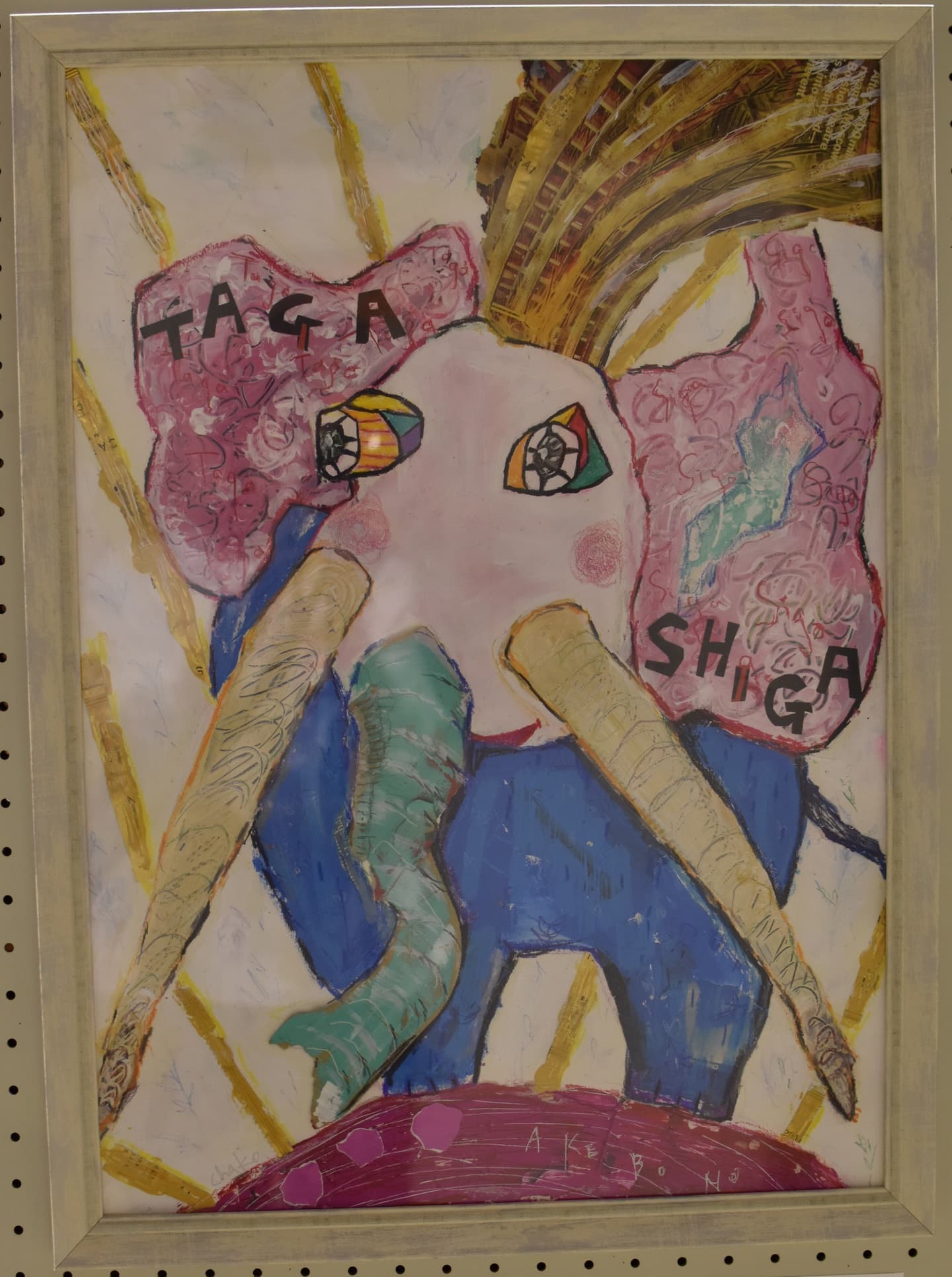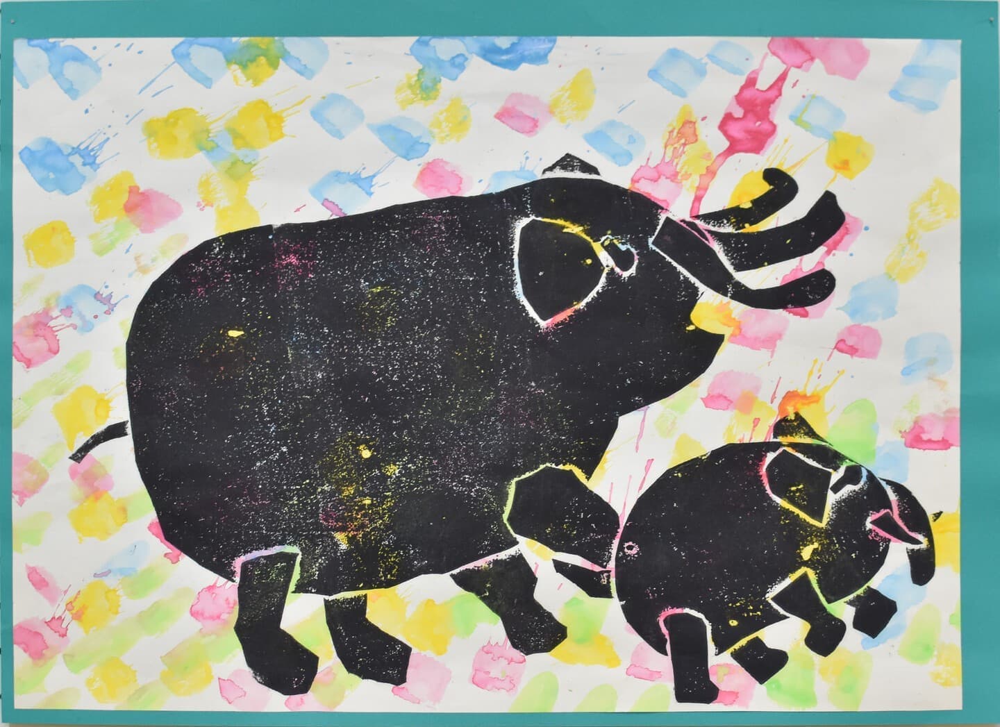 誰も見たことが無い「しがたがぞう」、自由に描いてみました。そして版画の技法上、偶然性も手伝って「これってゾウなの?」てなる作品が出来ました。いやぁ、楽しかった!