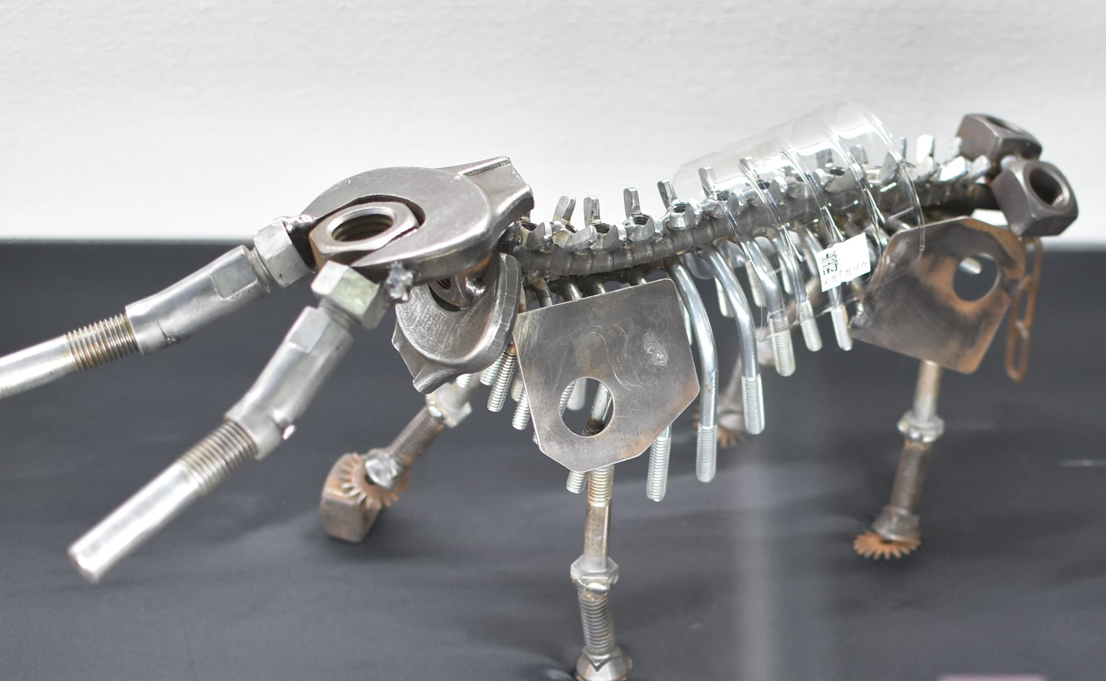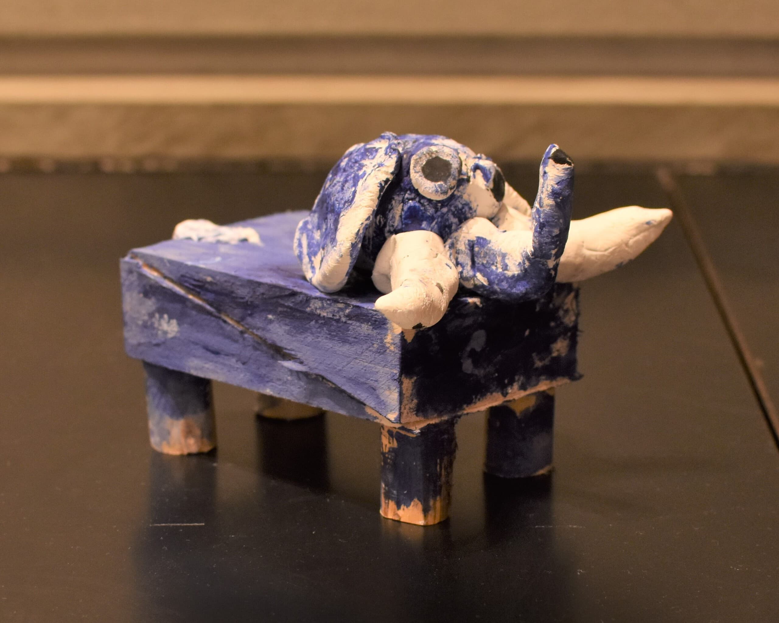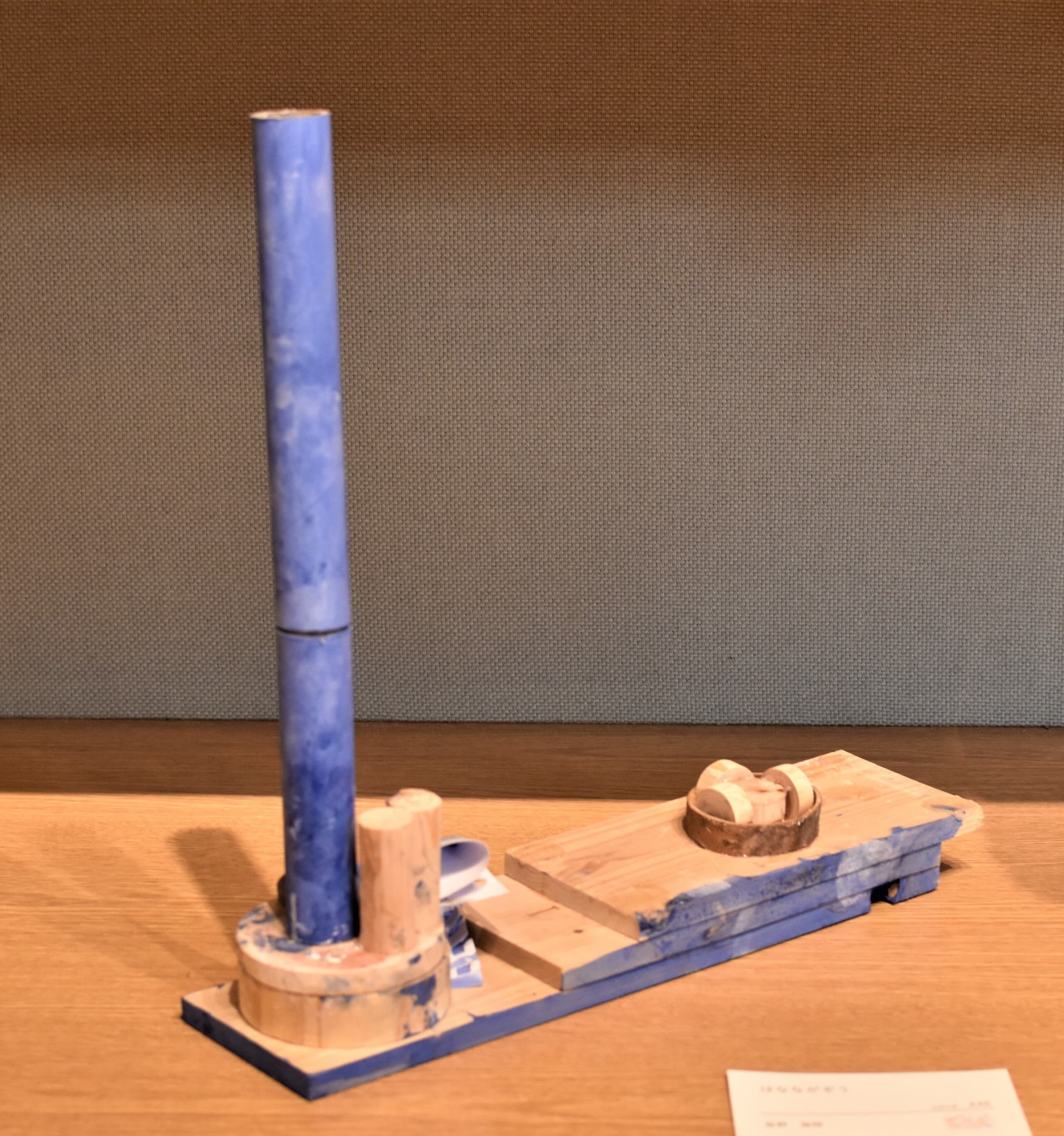 土台の材料に使った段ボールには温かみやゾウの皮膚をかもし出す凹凸があり、イメージが膨らみました。アケボノゾウの化石がシガタガゾウとしてが蘇ったらと思うとワクワクします!これから生まれるたくさんの伝説のひとつになれば嬉しいです。