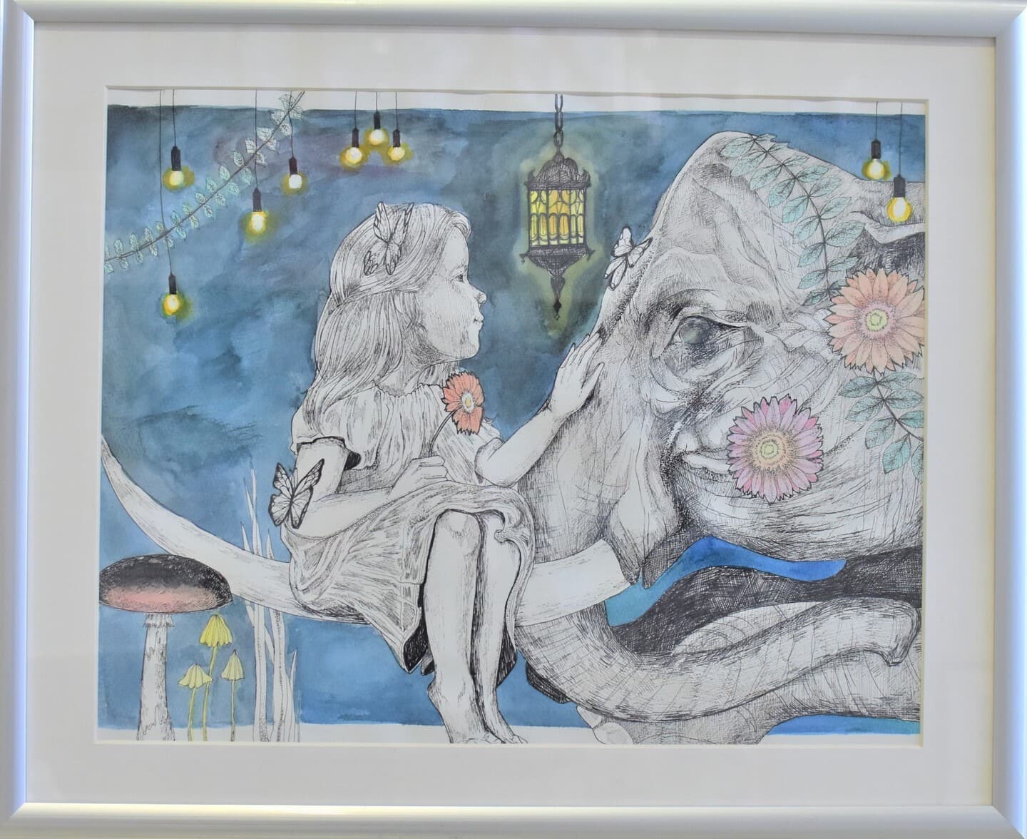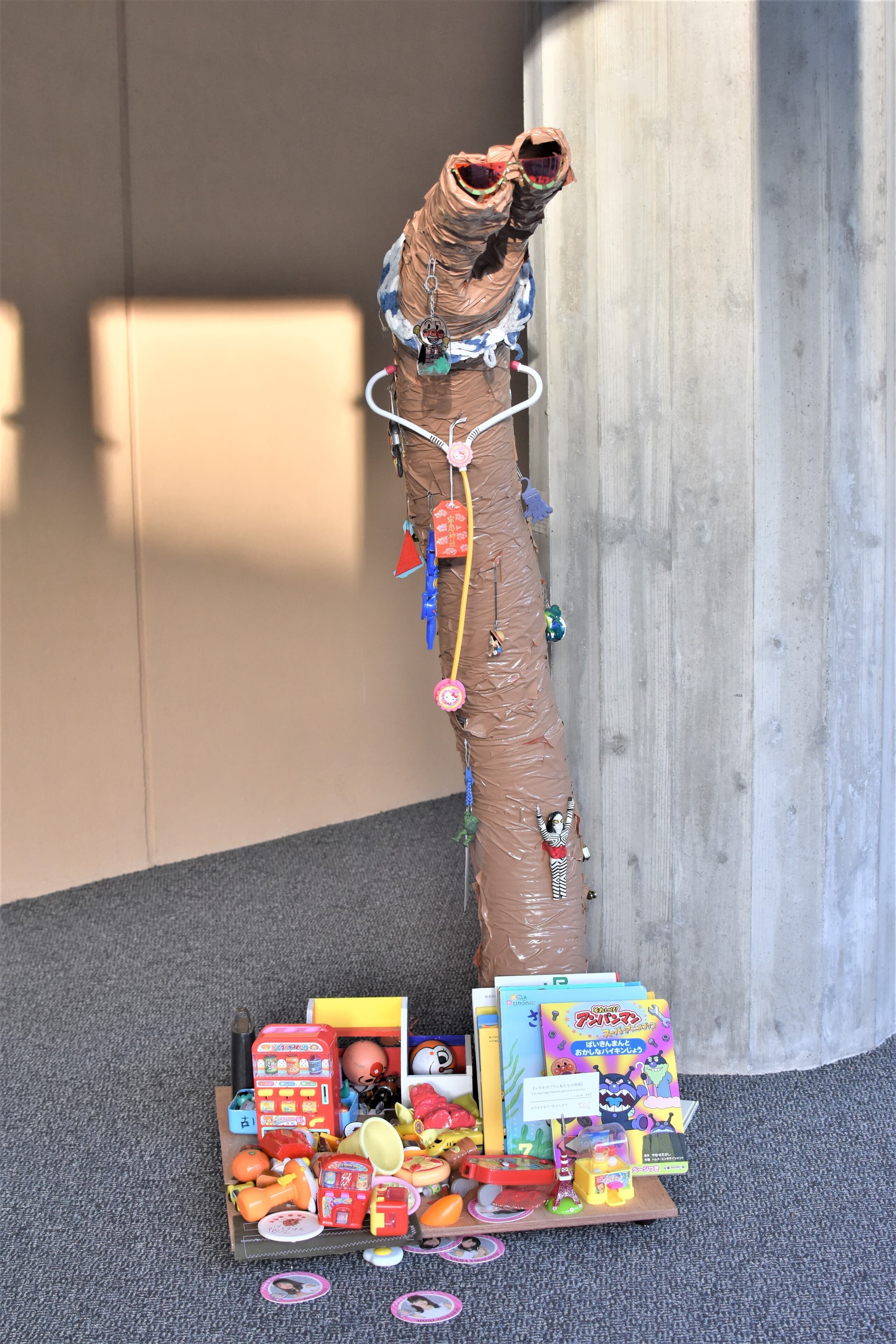 ミクストメディアによるインスタレーション。シガタガゾウの鼻とダウン症の子ども(D.よしひろ)の作品やおもちゃ、本を展示。想像上の象に思いを馳せながら私たちの日常からアプローチしたドリーミーな小さな旅。