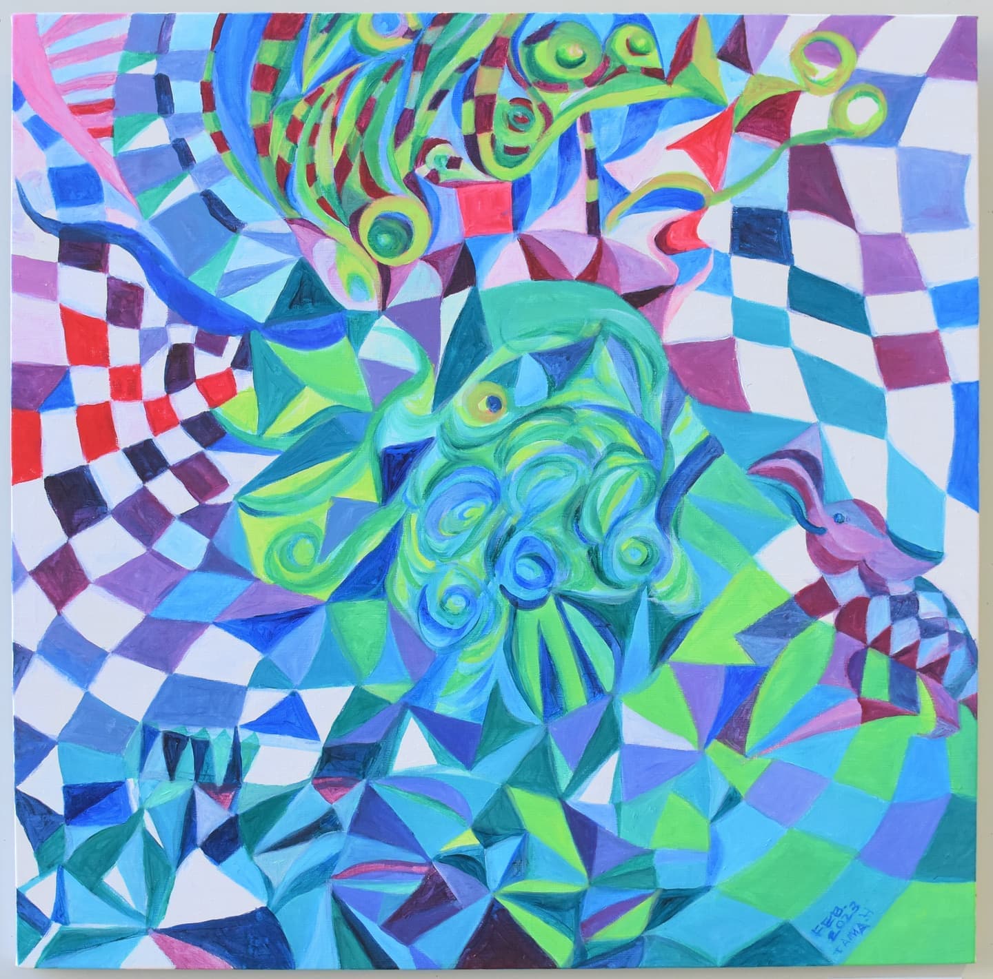 何より小学生を中心とした若い人たちの作品展示が微笑ましくて、とてもほのぼのとした気分になりました。 壁面では書道やパッチワークなどあらゆる分野の作品も見受けられ、会場内がとても華やかになっています。またテクニックを駆使したアートとしてレベルの高い作品も多くあり、見応えのあるアート展となっています…準グランプリを受賞されました槙 倫子さんの平面作品「わたしはわたしなの」は版画の技法を使い、既成概念にとらわれず思いつくまま自由に制作されていて、観ている我々も大らかな気持ちとなりました。この作品は審査員皆さんの評価も高く、感性と技術の高さに感心させられました。