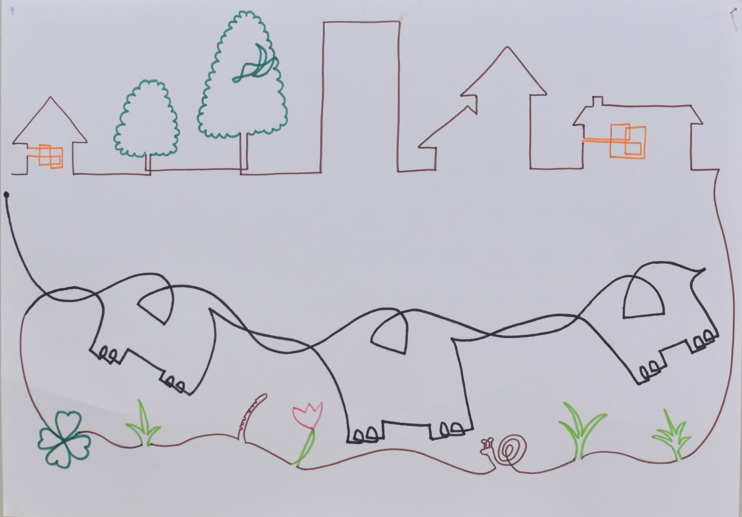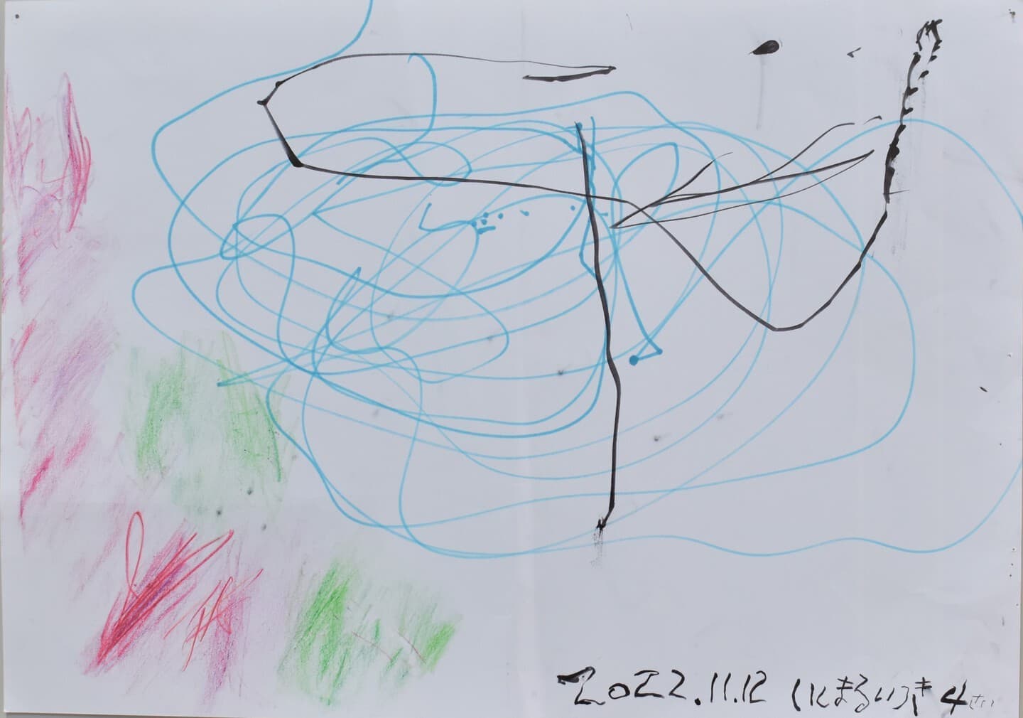 江村空な、江村海の、江村安海、江村耕市の家族4人で一緒にアケボノゾウを描きました。描きながらいくつかの会話とともに聞こえてくるいろんな音が録音されました。2023年3月の記憶と記録です。