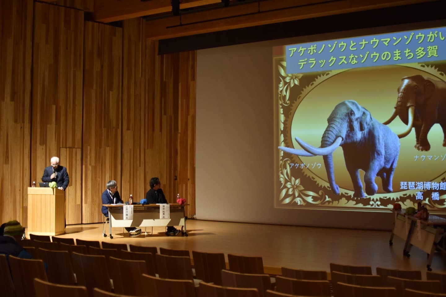 アケボノゾウことならこの方!当時の化石の発掘に携わり、長年多賀町立博物館の館長を務められた小早川先生が、アケボノゾウソムリエとして、皆さんとゾウ談します。