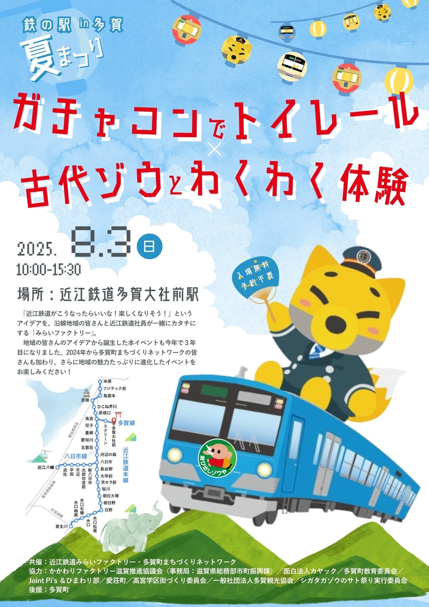 鉄の駅in多賀 夏祭り「ガチャコンでトイレール×古代ゾウとわくわく体験」